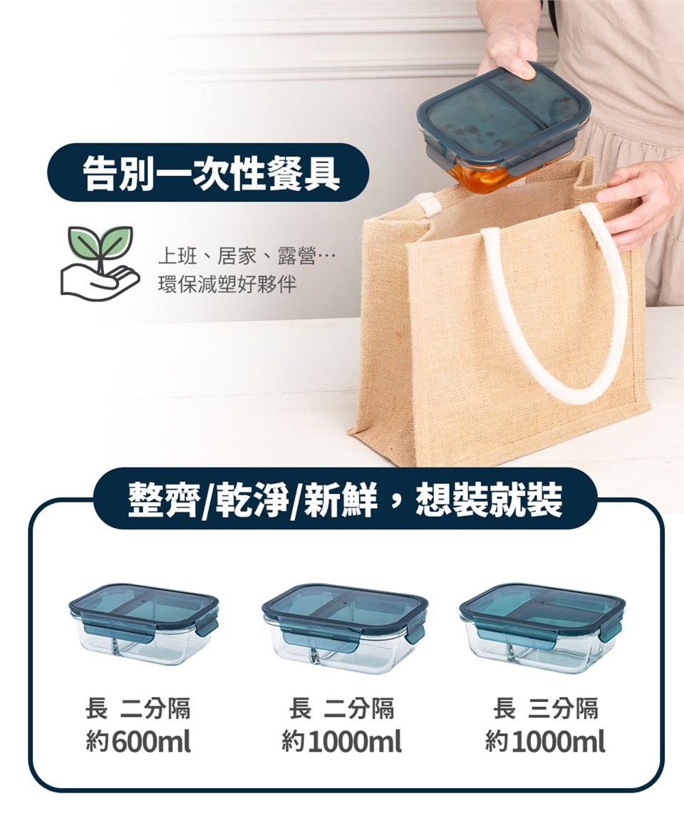 品名:【CookPower鍋寶】耐熱玻璃三格分隔保鮮盒1000ml(BVG-10031)