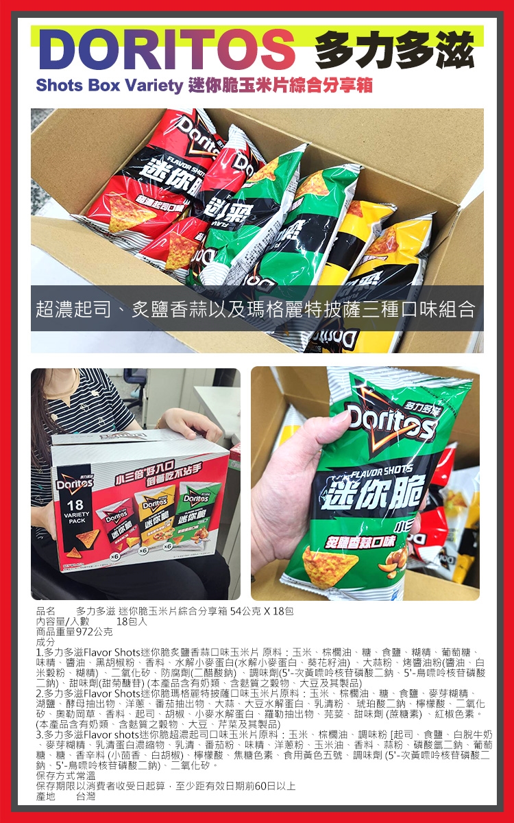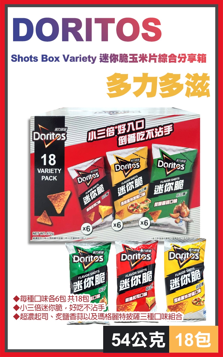 品名:多力多滋 迷你脆玉米片綜合分享箱 54公克 X 18包