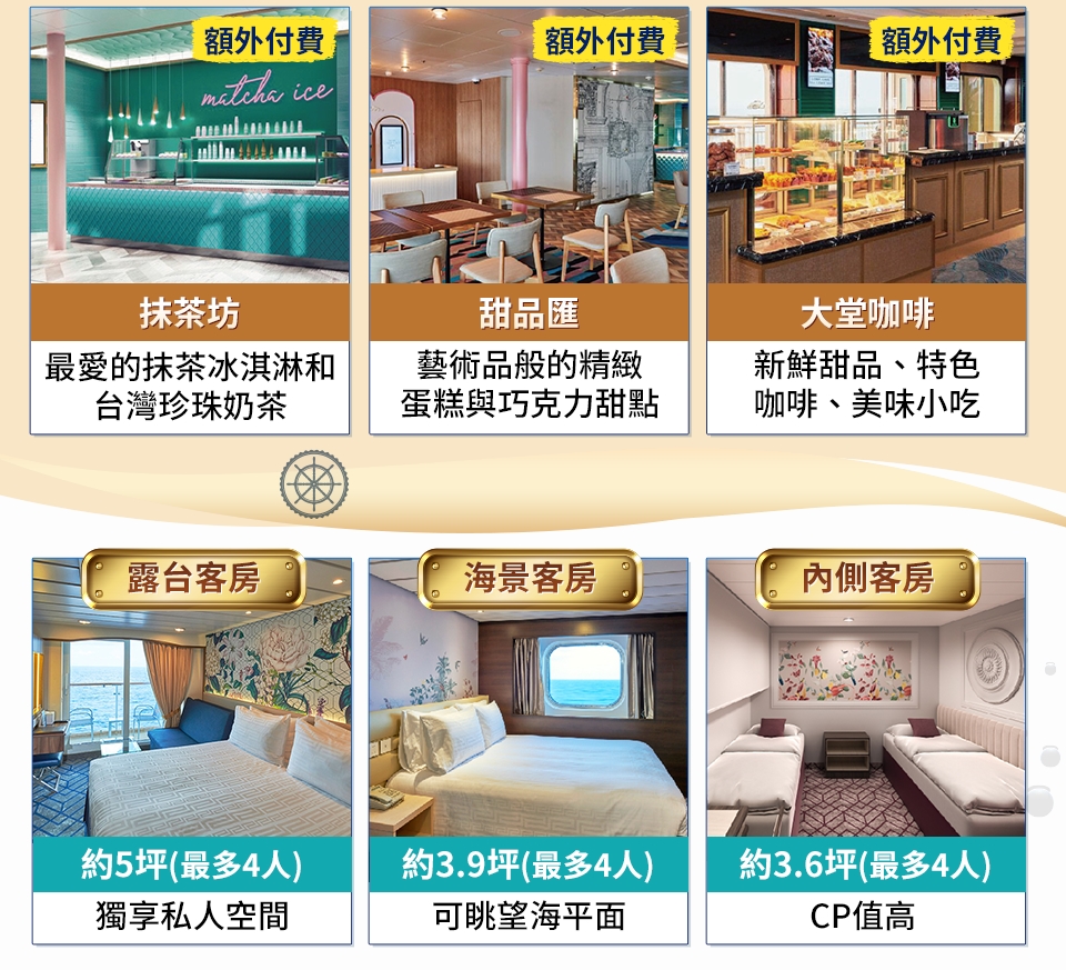 ※ 變更後之訂位已不適用原優惠內容,須以新訂位當時適用之艙房價格計算。