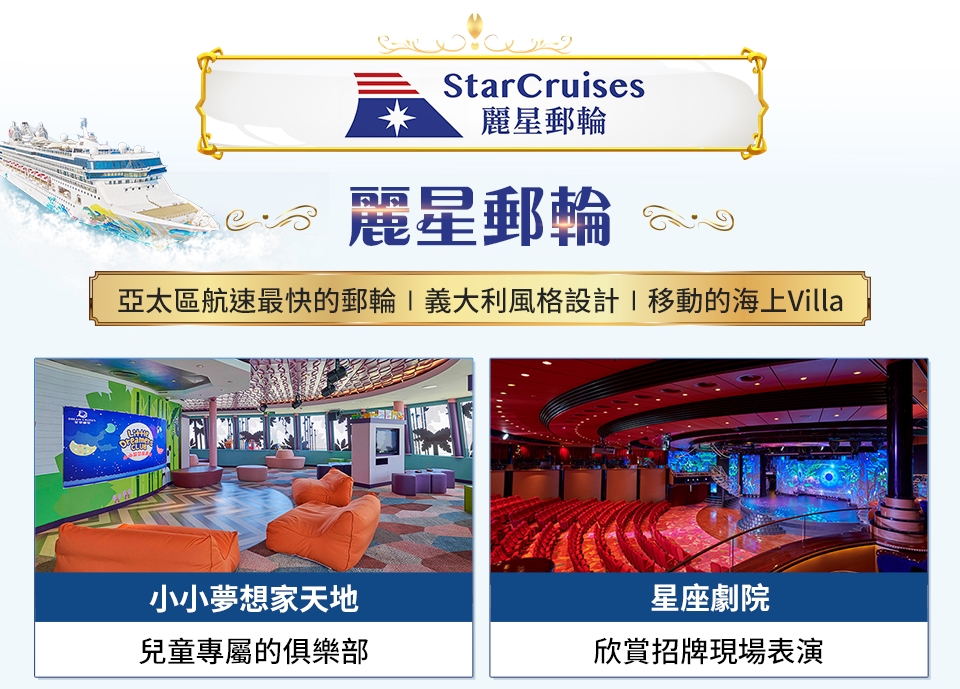 ※ 麗星郵輪 探索星號在不可抗力及惡劣天候因素下,保有取消或更改既定航程、時間、船舶及價格之權利,恕不預先通知。