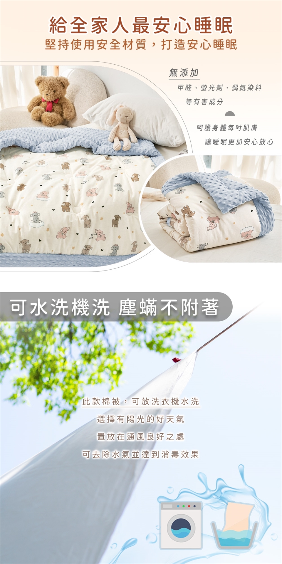 ▪ 清洗時,請勿將洗劑直接倒於布料上,且確保清潔劑完全溶解於水中再放入,以免造成布料褪色 ,洗後置通風處自然陰乾即可。