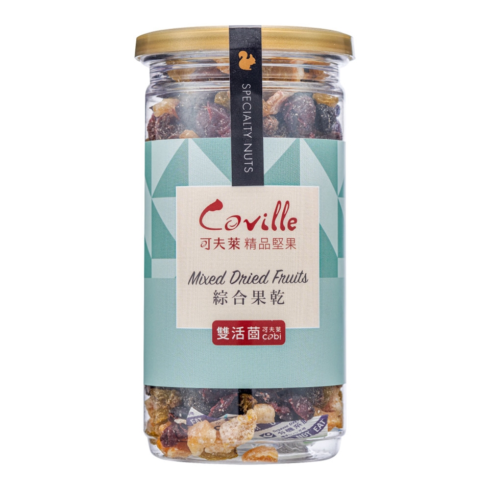 雙活菌養生綜合果乾-【200g/罐】:葡萄乾(葡萄乾、葵花油)、青提子、蔓越莓(蔓越莓、砂糖、檸檬酸、葵花油、接骨木莓濃縮汁)、杏桃(杏桃、米澱粉)、無花果(無花果、米澱粉)、納豆菌孢子(燕麥粉、納豆菌發酵物、麥芽糊精)、芽孢乳桿菌孢子(燕麥粉、芽孢乳酸菌發酵物、麥芽糊精)