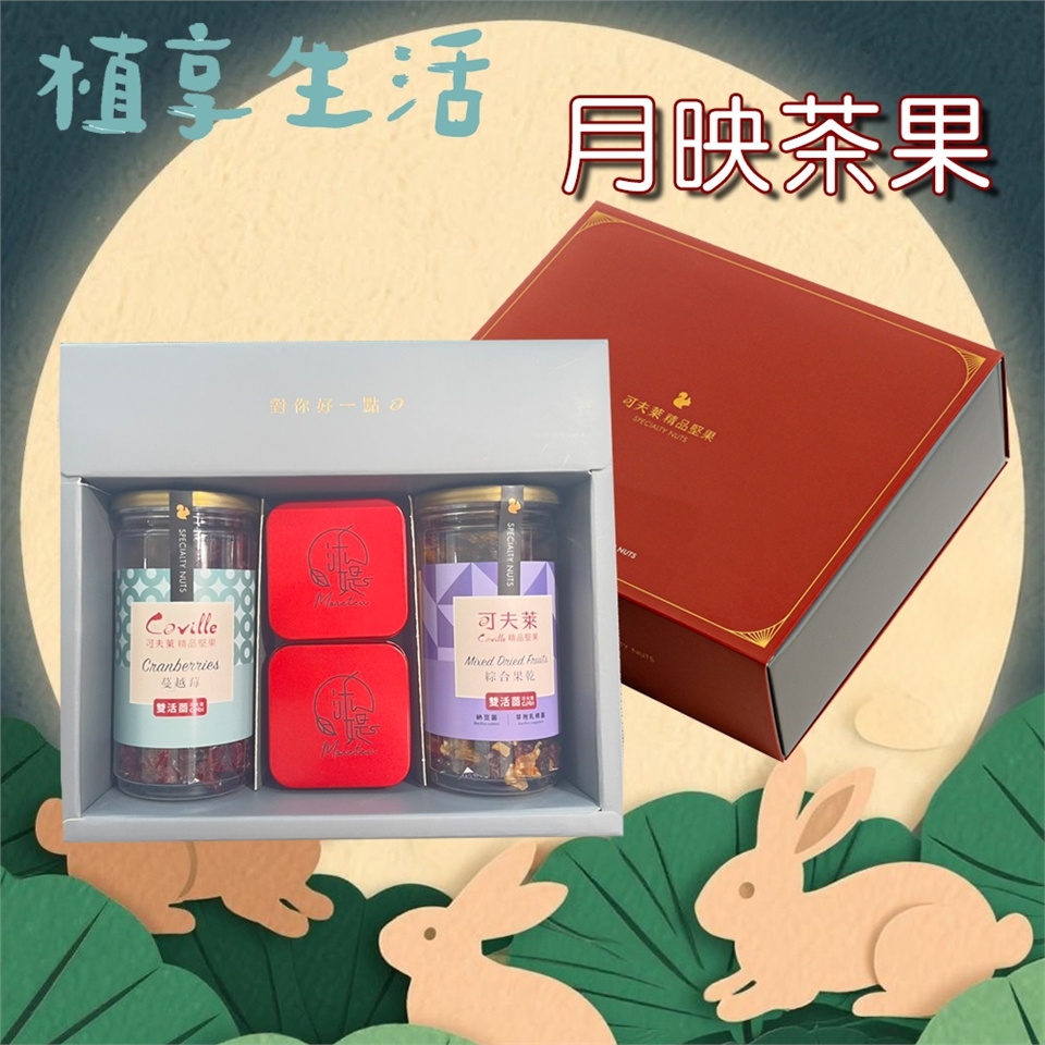 【植享生活|可夫萊精品堅果】春節限定-月映茶果禮盒組(雙活菌蔓越莓、雙活菌養生綜合果乾、沐媞茶葉x2罐)附提袋