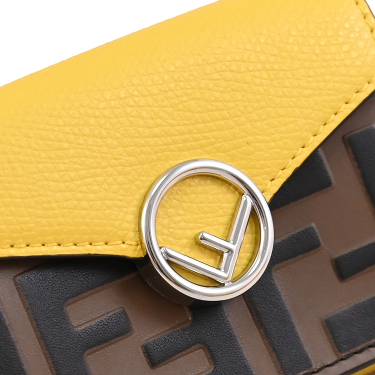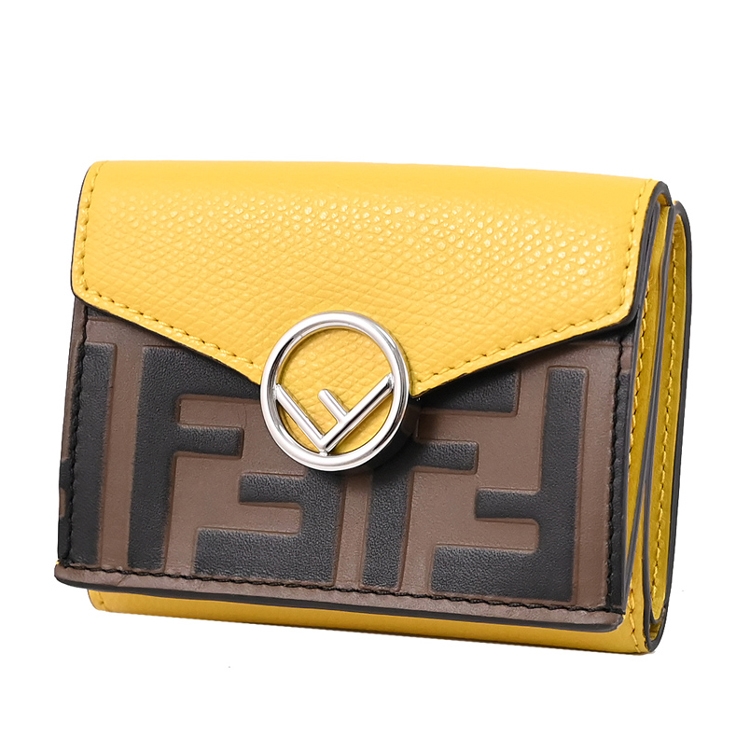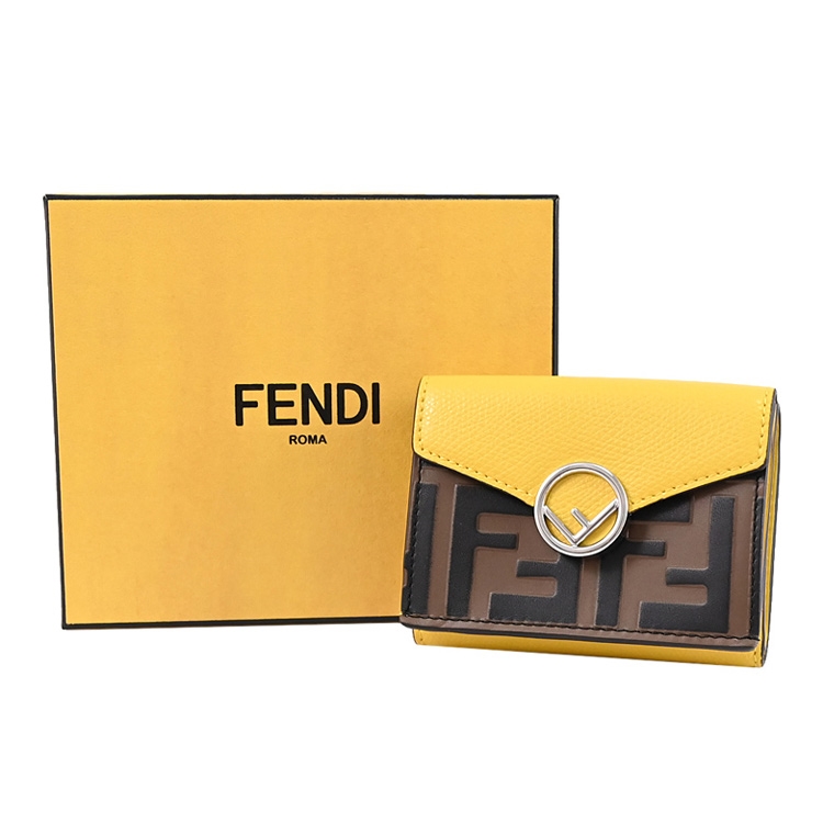 FENDI 品牌己延續歷史的精髓,F LOGO設計不止是顯現完美的奢華、沉穩、熟女專用的精品,除了保有傳統奢華形象,現在的FENDI 多了更多的變化的策略,深入觀察FENDI的世界,便能慢慢體會它的精品美學趣味;經典三折小短夾,立體壓花FF LOGO,質感撞色牛皮拼接,內有3信用卡夾+1鈔票夾層,外有1貼層+1扣式零錢袋,好收納,最佳的時尚小配件,美觀持久耐用的品味小配件。