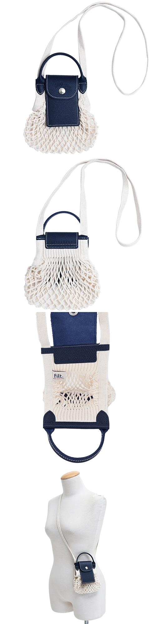 LONGCHAMP LE PLIAGE FILET系列網狀棉質手提/斜背翻蓋兩用包(迷你/海軍藍)
