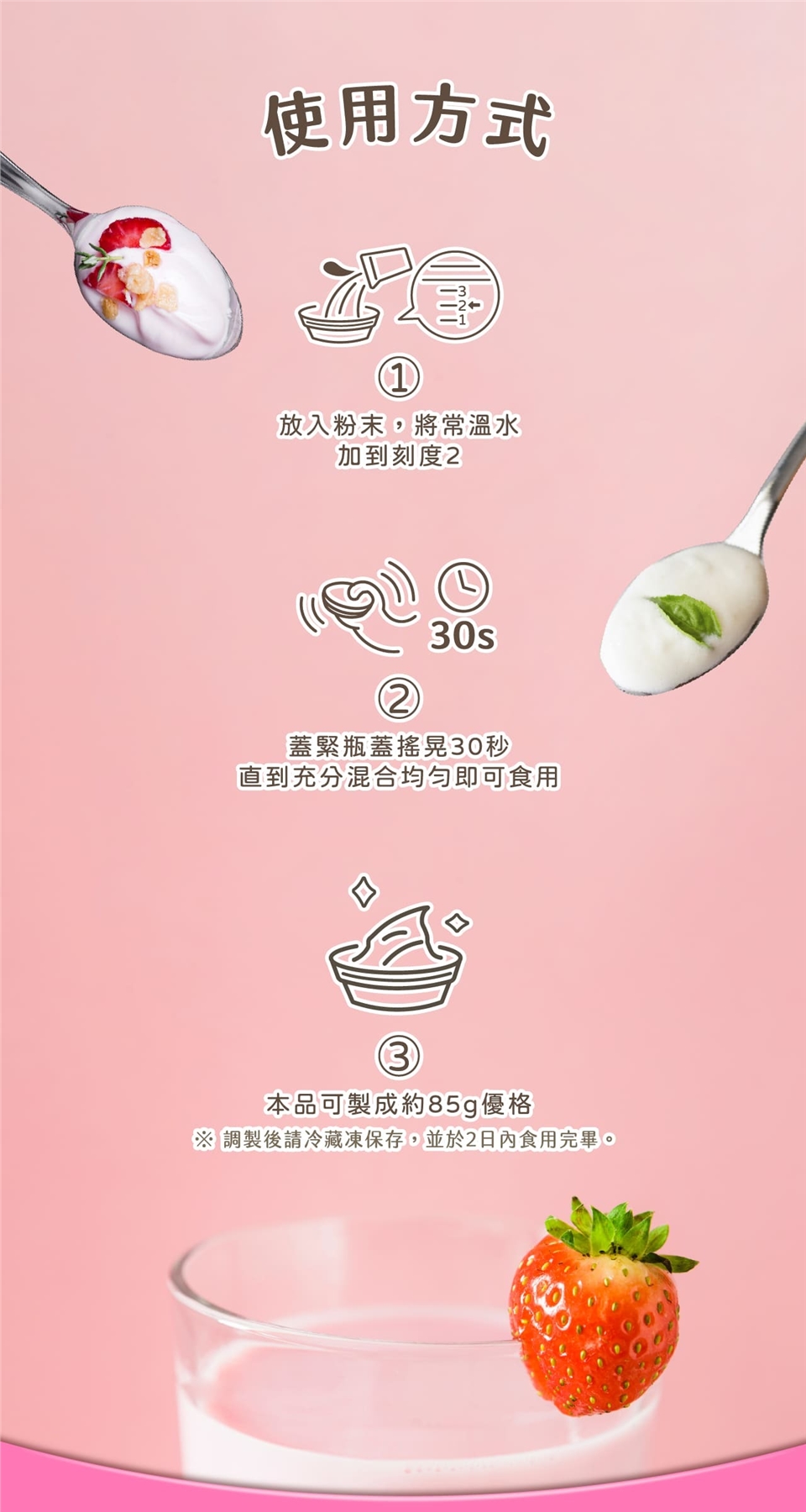②本品可製成約85g優格。