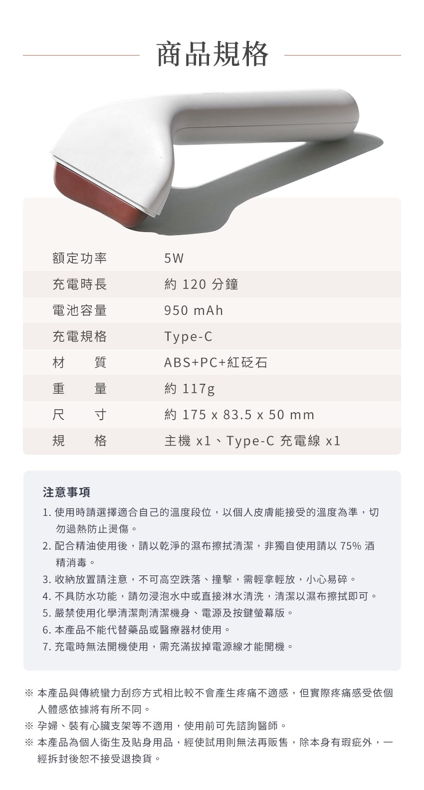 ※ 與傳統蠻力刮痧方式相比較不會產生疼痛不適感,但實際疼痛感受依個人體感依據將有所不同。