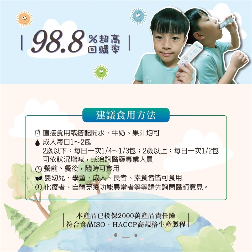 2歲以上孩童建議從每日半包開始食用,可依狀況增減