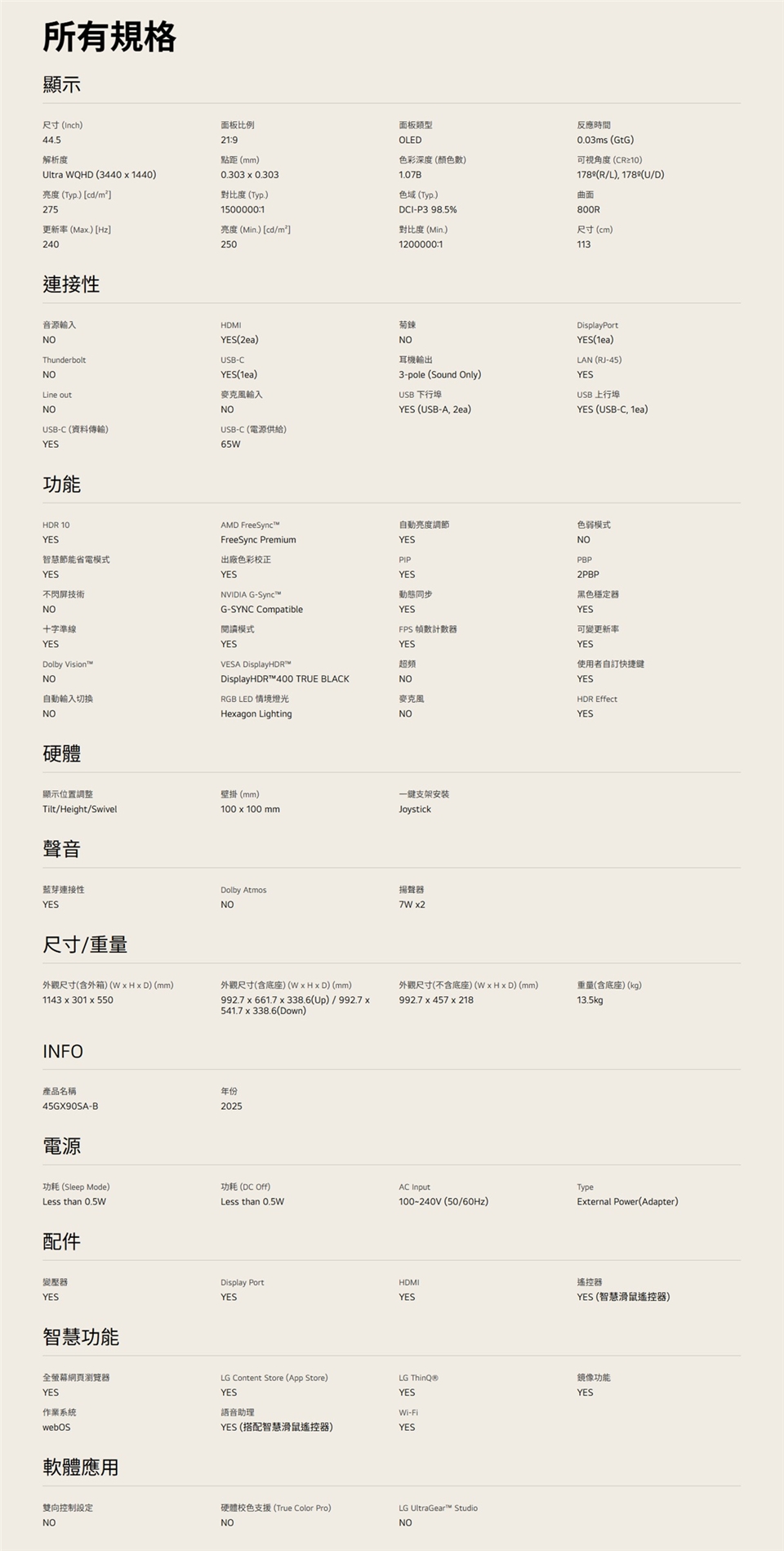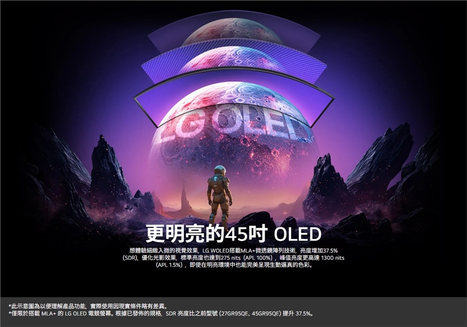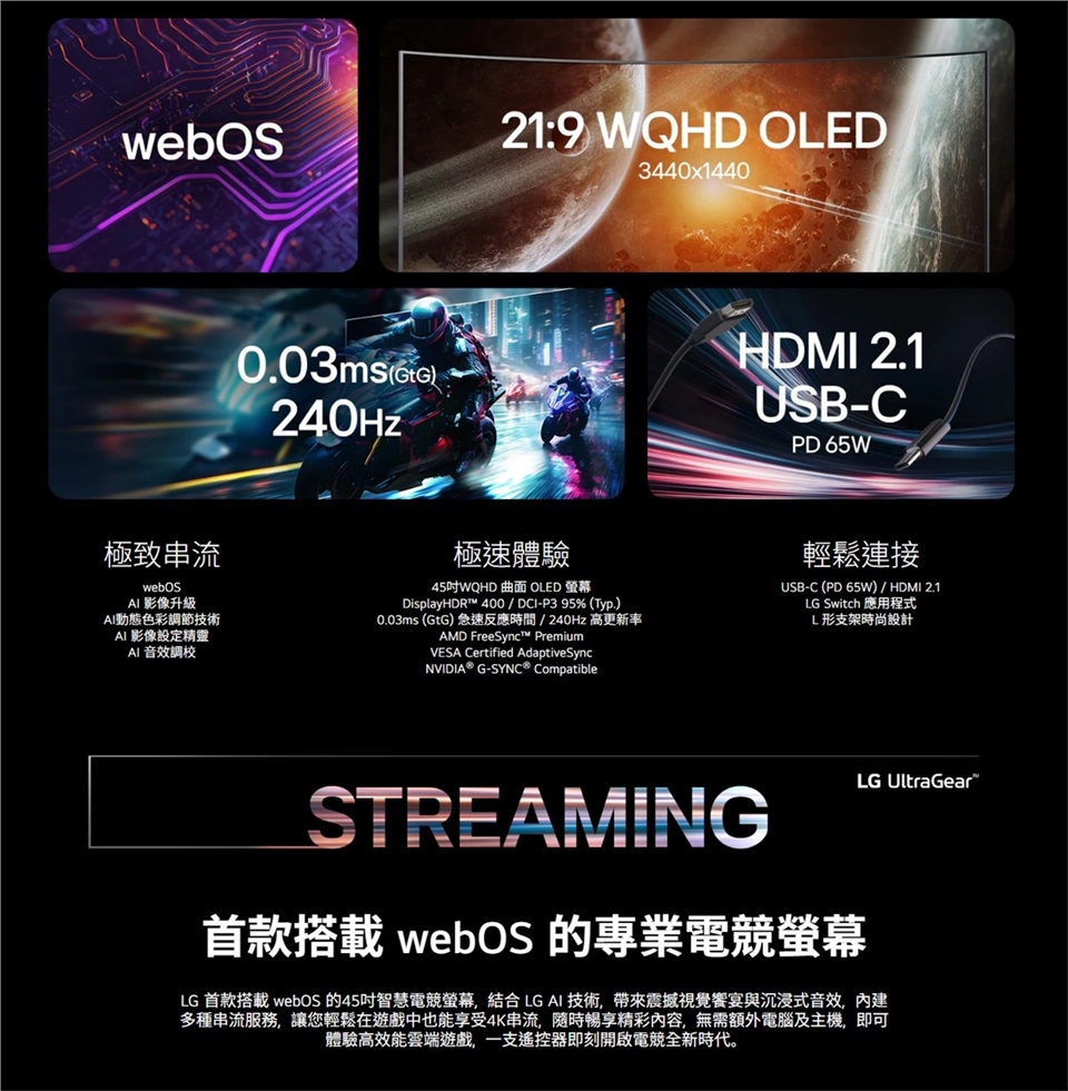 - 45'' WQHD (3440 x 1440) OLED螢幕