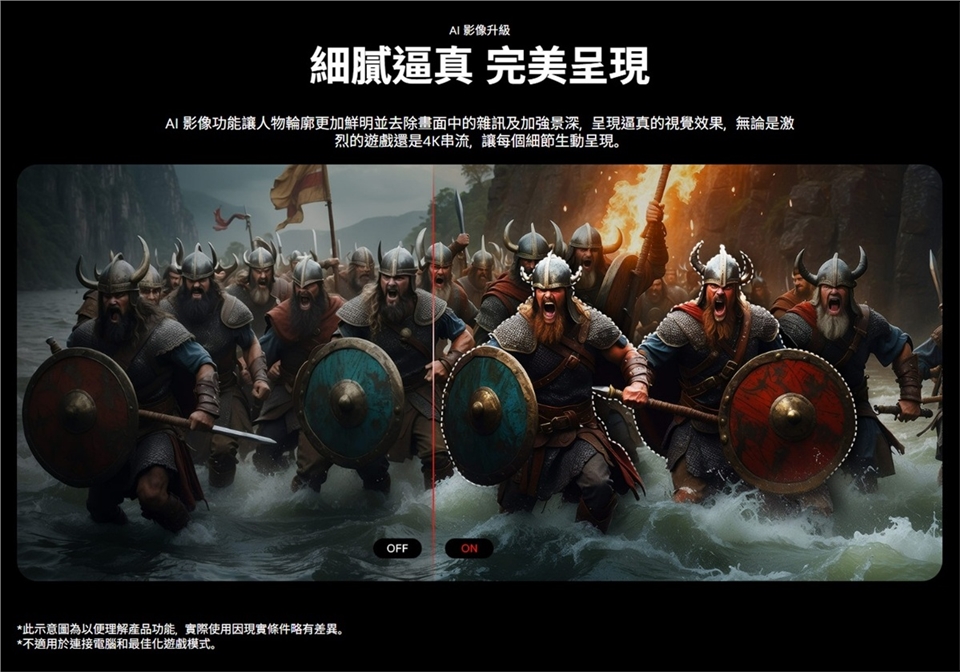 - AI 影像升級 / 動態色彩調節 /AI 影像設定精靈 / AI 音效調校