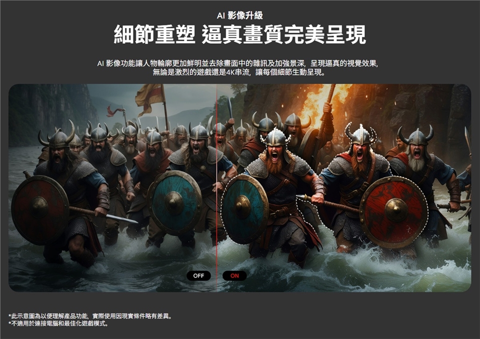 - AI 影像升級 / 動態色彩調節 /AI 影像設定精靈 / AI 音效調校