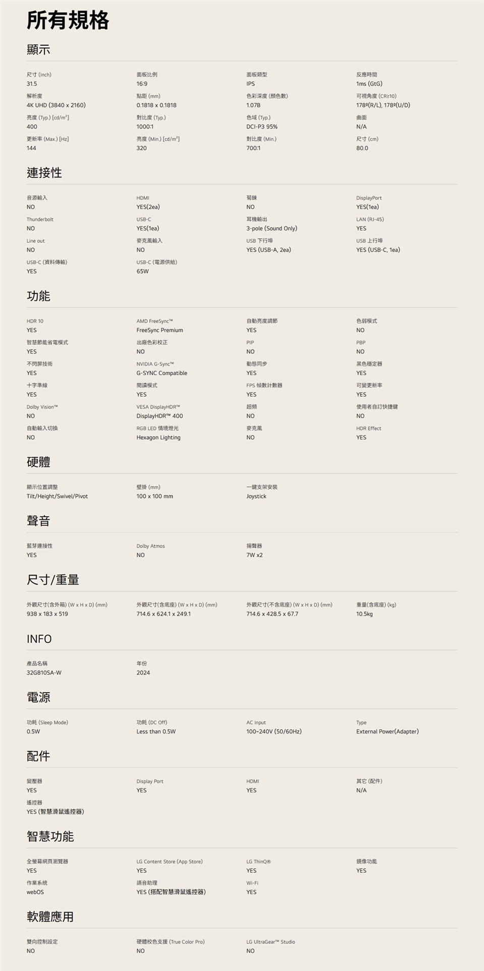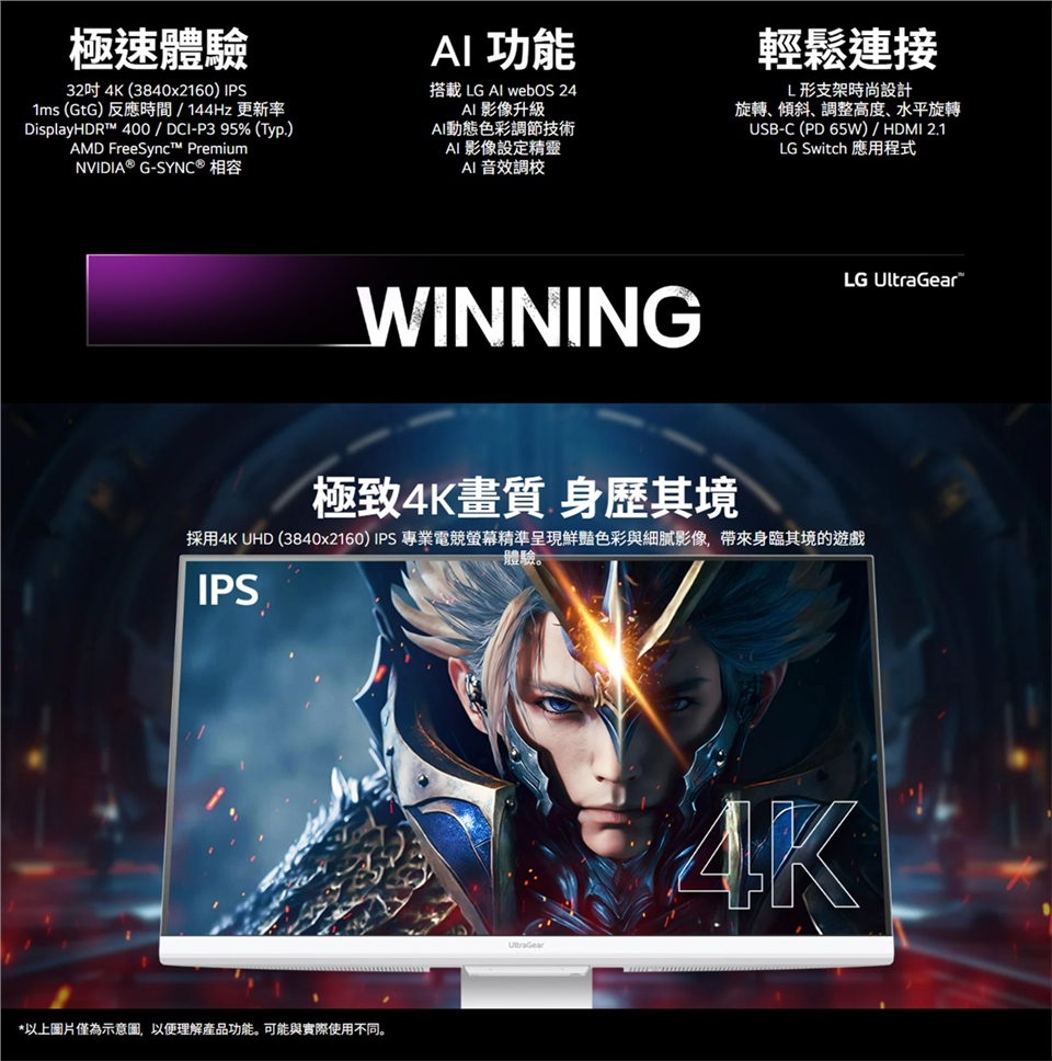 - 32'' 4K UHD (3840x2160) IPS 高畫質螢幕