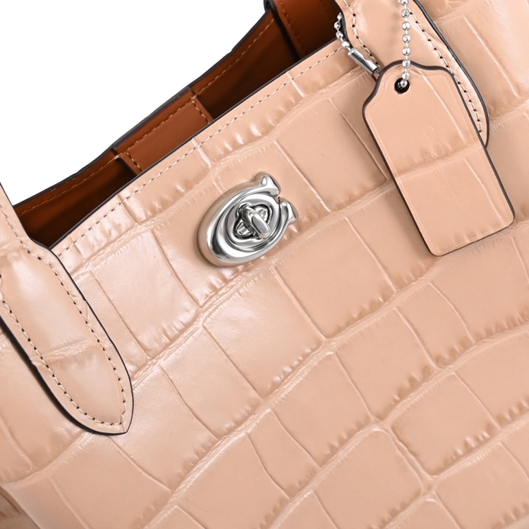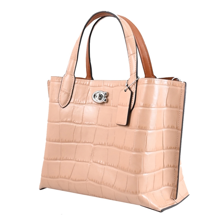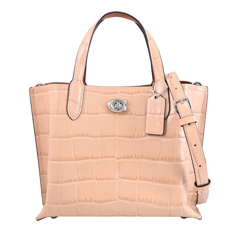 COACH 專櫃商品,WILLOW 24系列托特包,採用鱷魚壓紋皮革與皮革製作,處處顯現精緻質感,雙隔層+中間1拉鍊袋,轉扣與磁扣開口設計,可拆式背帶更加實用,可輕鬆收納手機、長夾和其他必需品,無論外出逛街或出遊皆實用。