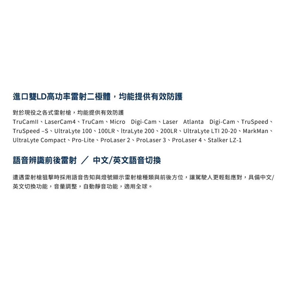 ★遭遇狙擊時,語音告知與燈號顯示雷射槍種類與前後方位