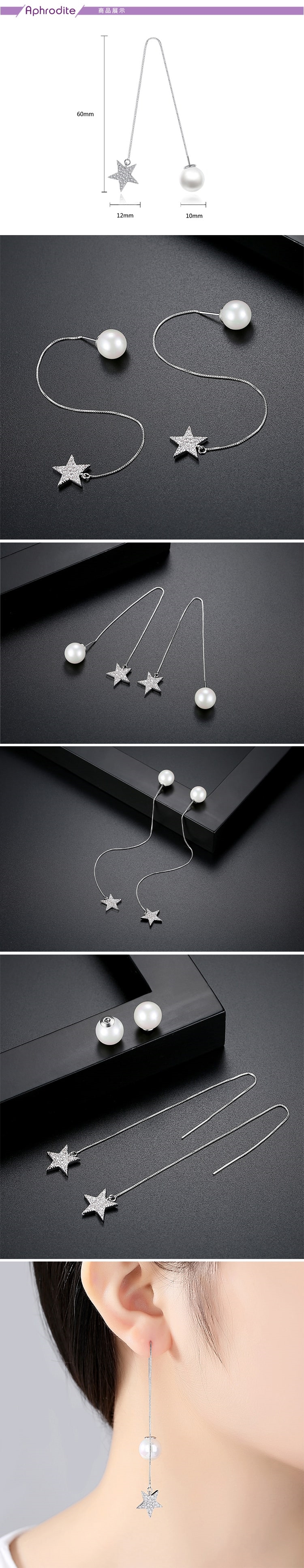 【愛芙晶鑽】微鑲美鑽五角星珍珠長耳線造型耳環 美鑽耳環