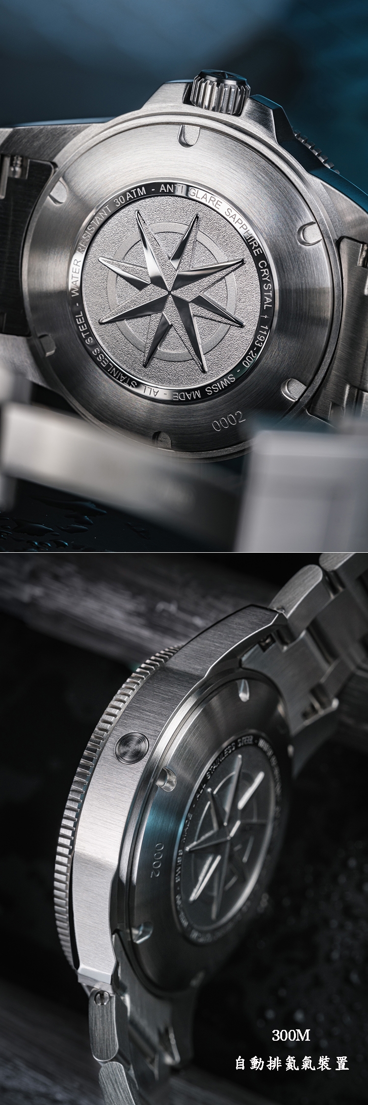 此為300M專業潛水錶,完全防水、隨時隨地皆可防水。