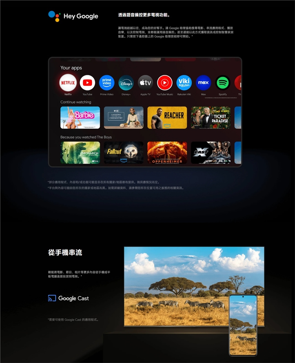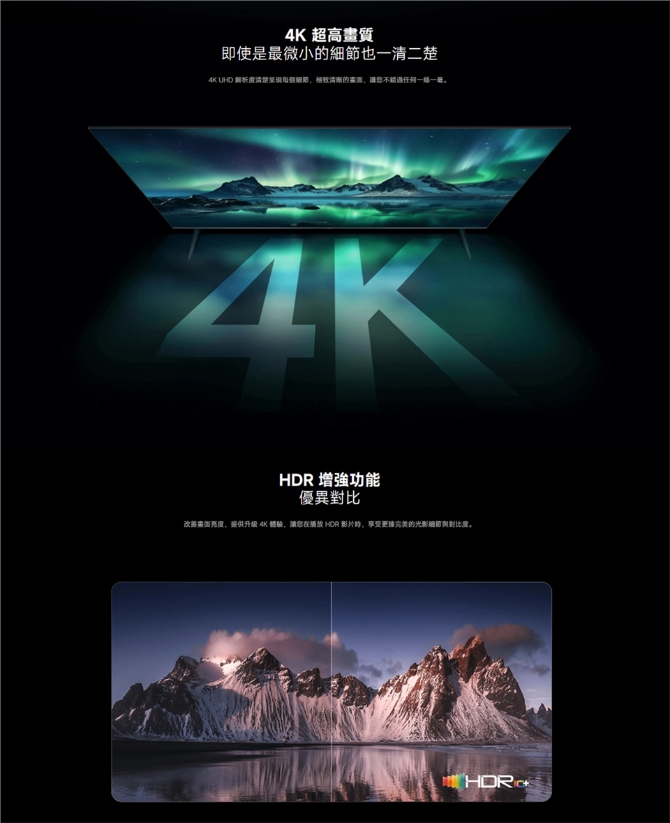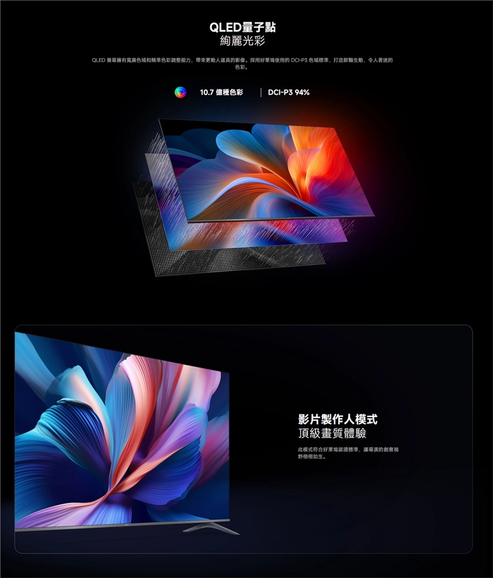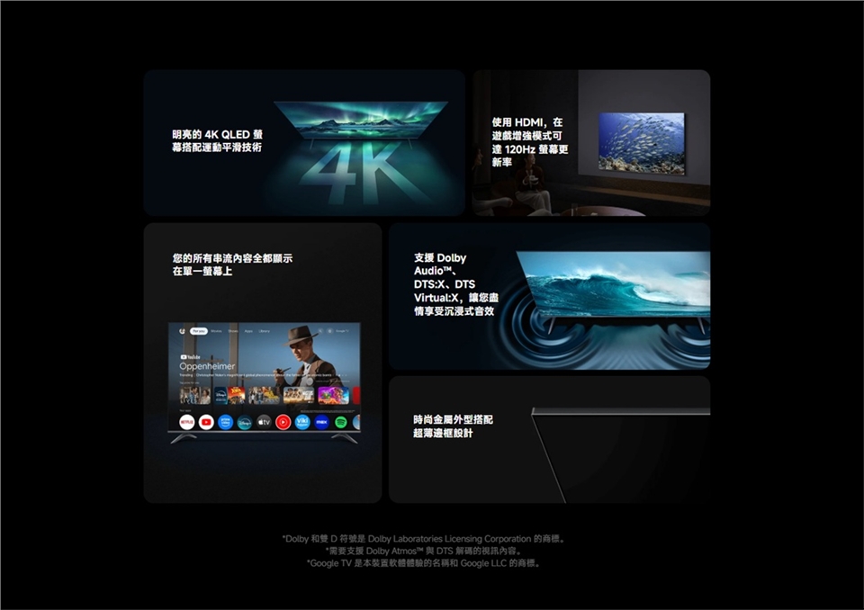 - 明亮的 4K QLED 螢幕搭配運動平滑技術