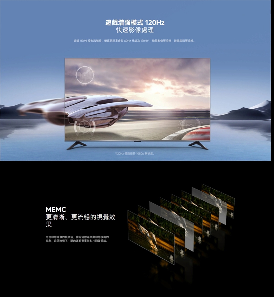 - 使用 HDMI,在遊戲增強模式可達 120Hz 螢幕更新率