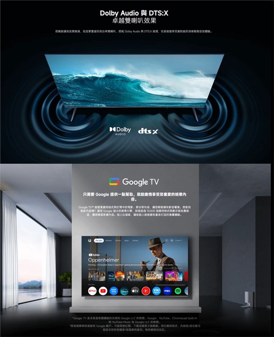 - 支援 Dolby Audio™、DTS:X、DTS Virtual:X,讓您盡情享受沉浸式音效