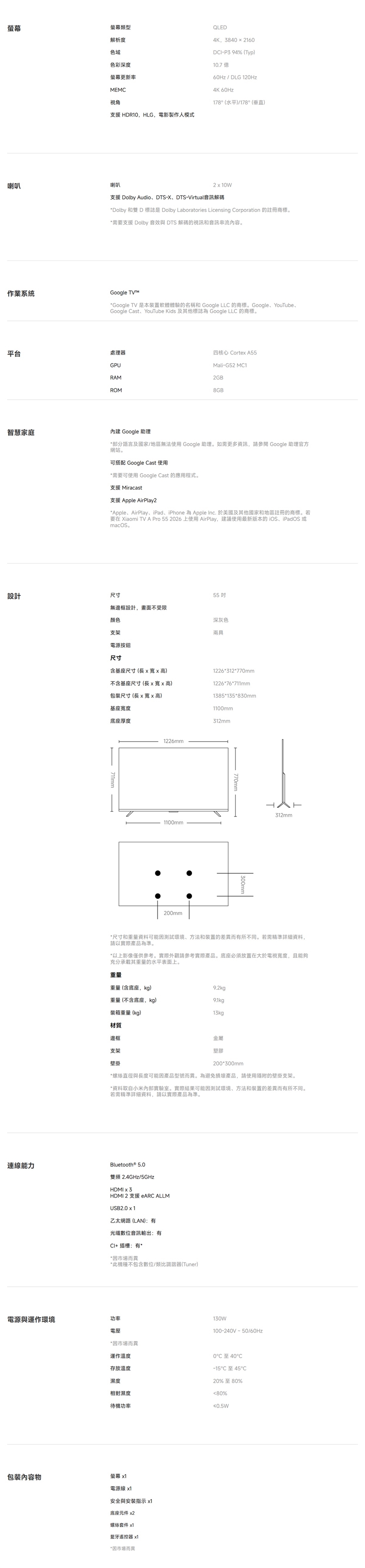 - 明亮的 4K QLED 螢幕搭配運動平滑技術