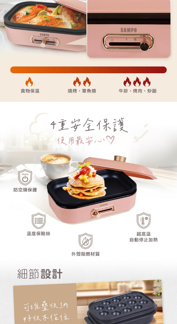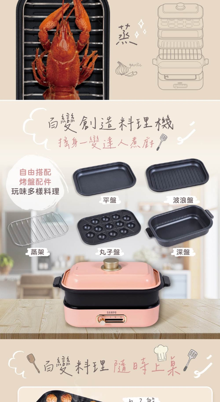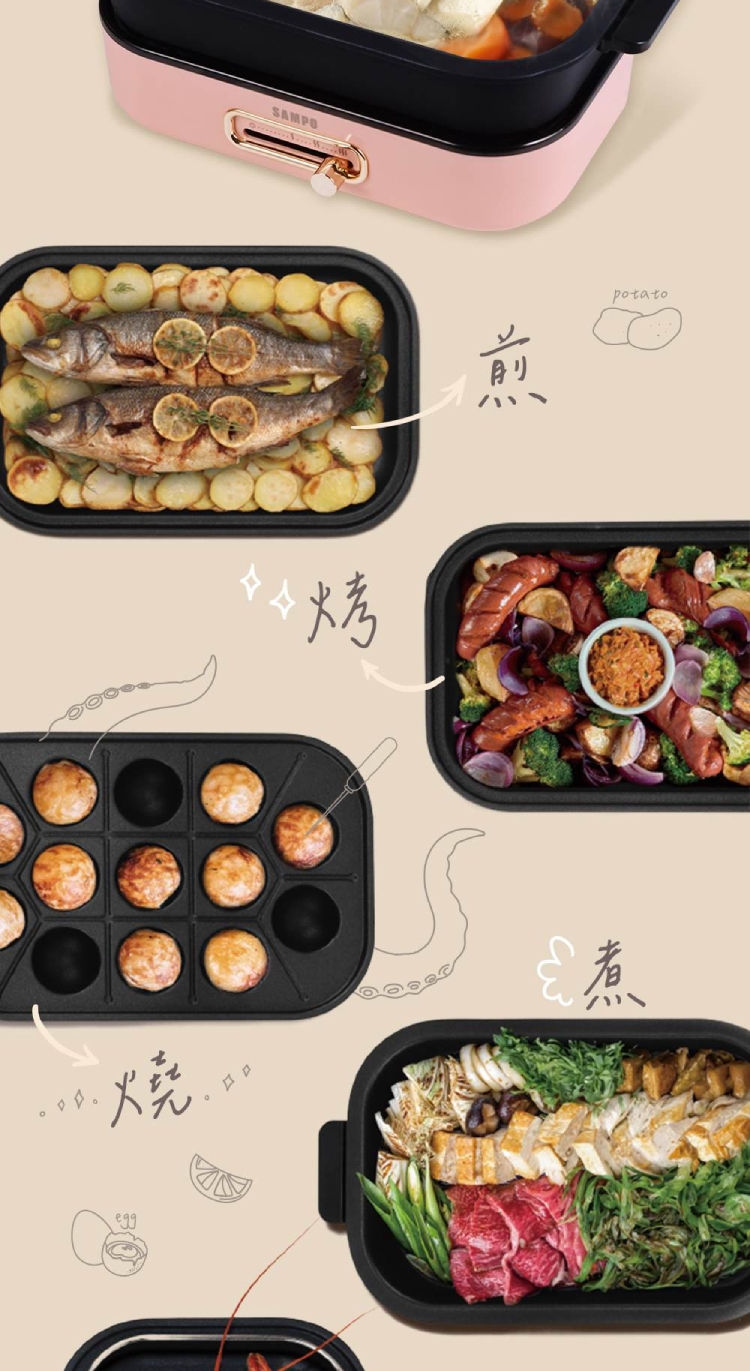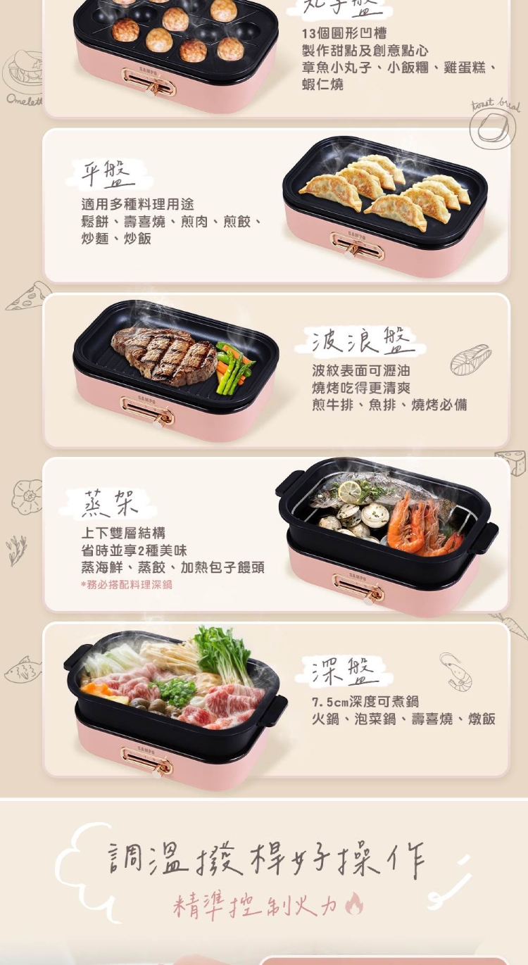 ◆ 多種配件『火鍋、燒烤、煎烤、蒸煮、章魚燒』一機可搞定!
