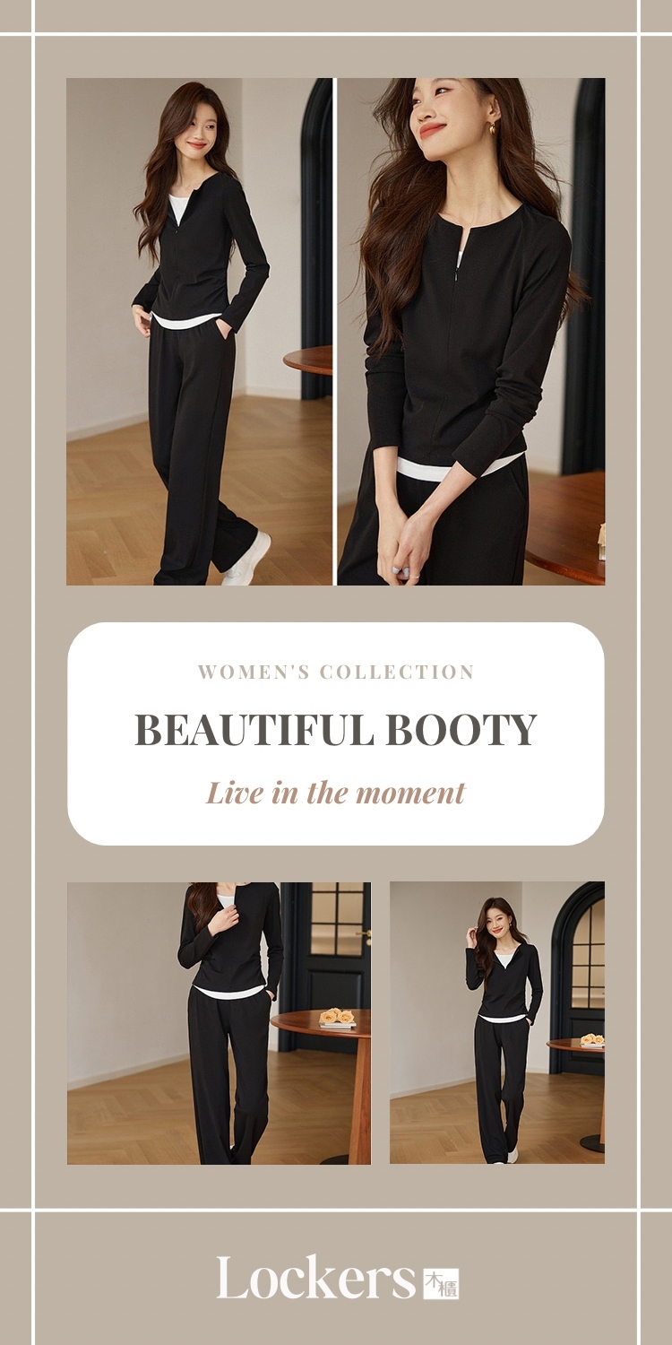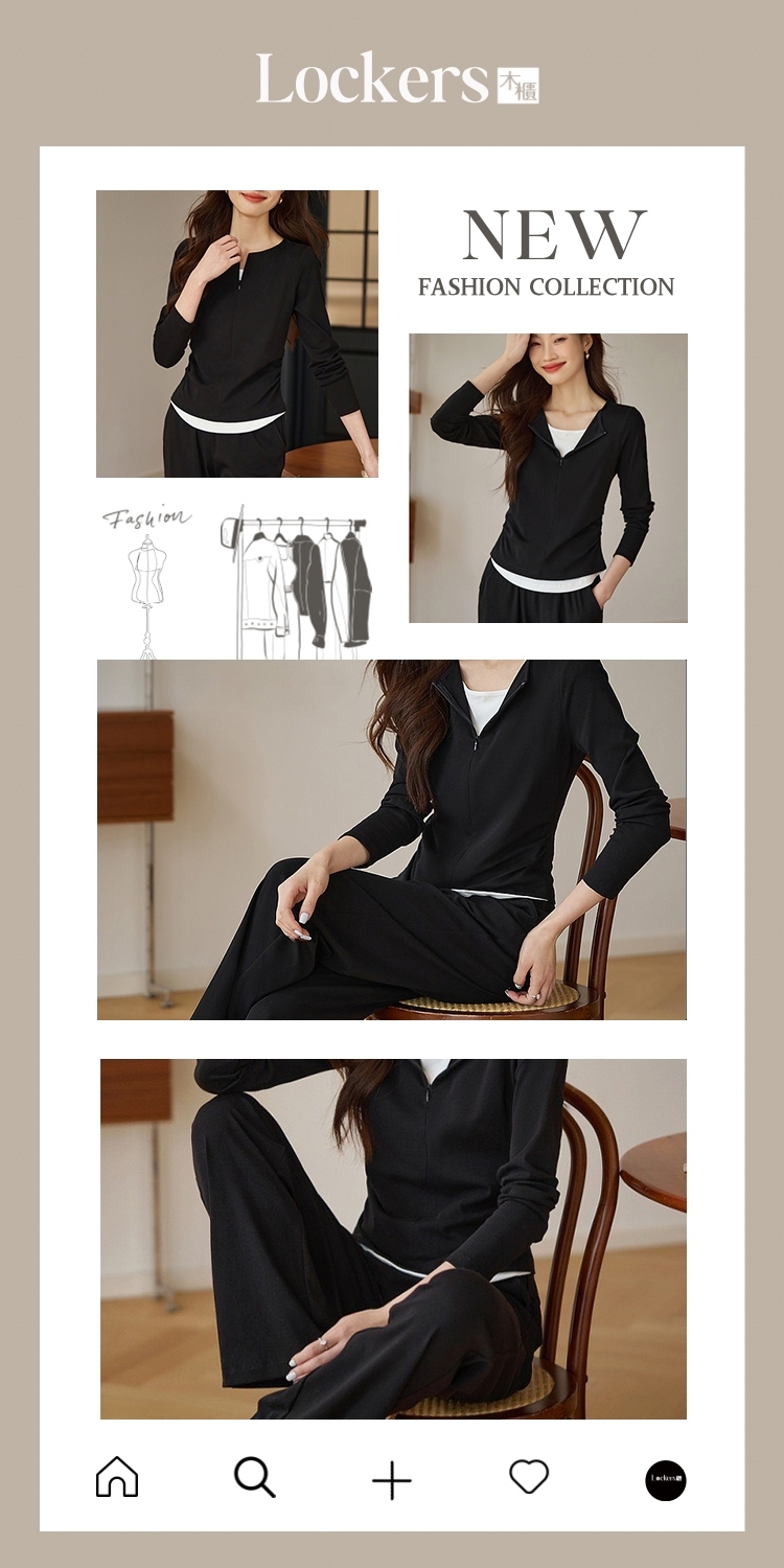 【Lockers 木櫃】黑色假兩件休閒套裝 L114091005
