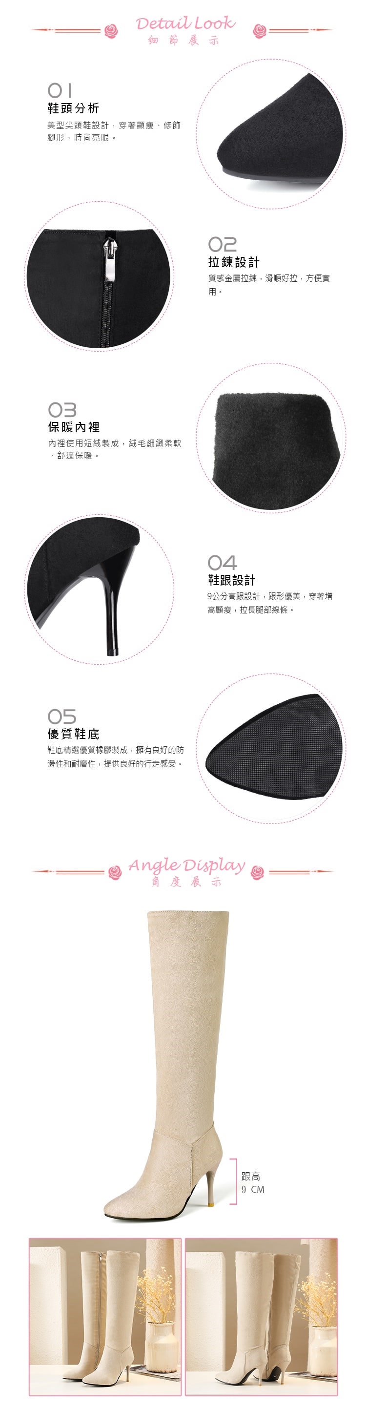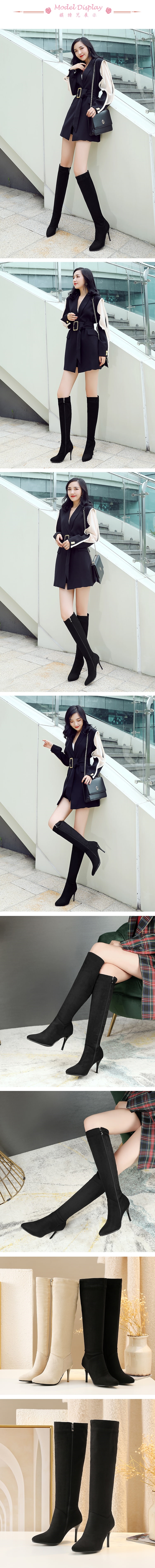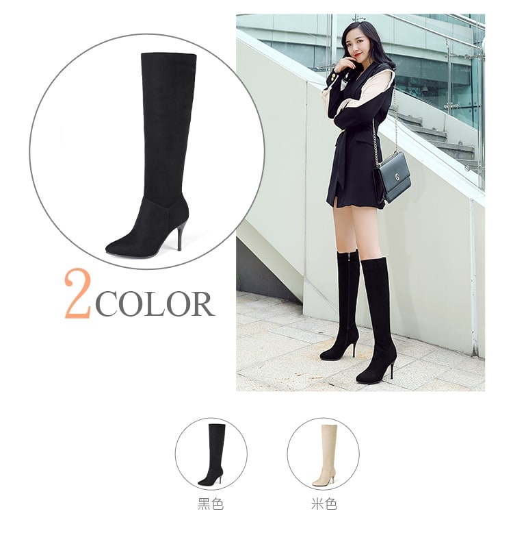 【Kissxxx】尖頭絨面高跟長靴/美腿效果優雅尖頭絨面高跟長靴 女鞋 黑