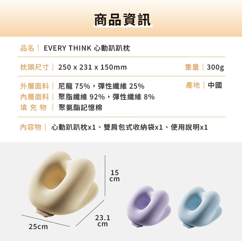 產品內容物:趴睡枕x1、收納袋x1、使用說明x1