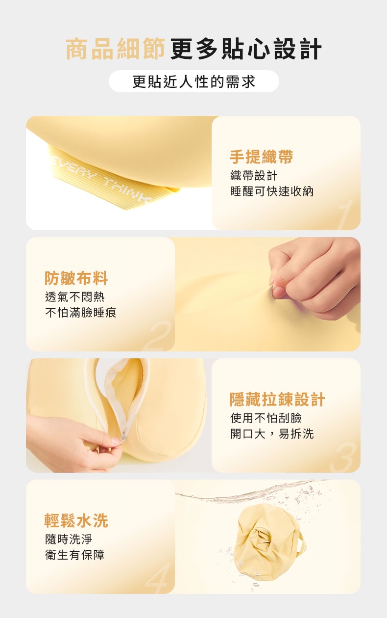 1. 頸枕設有拉鍊,可將枕頭套拆出單獨清洗。