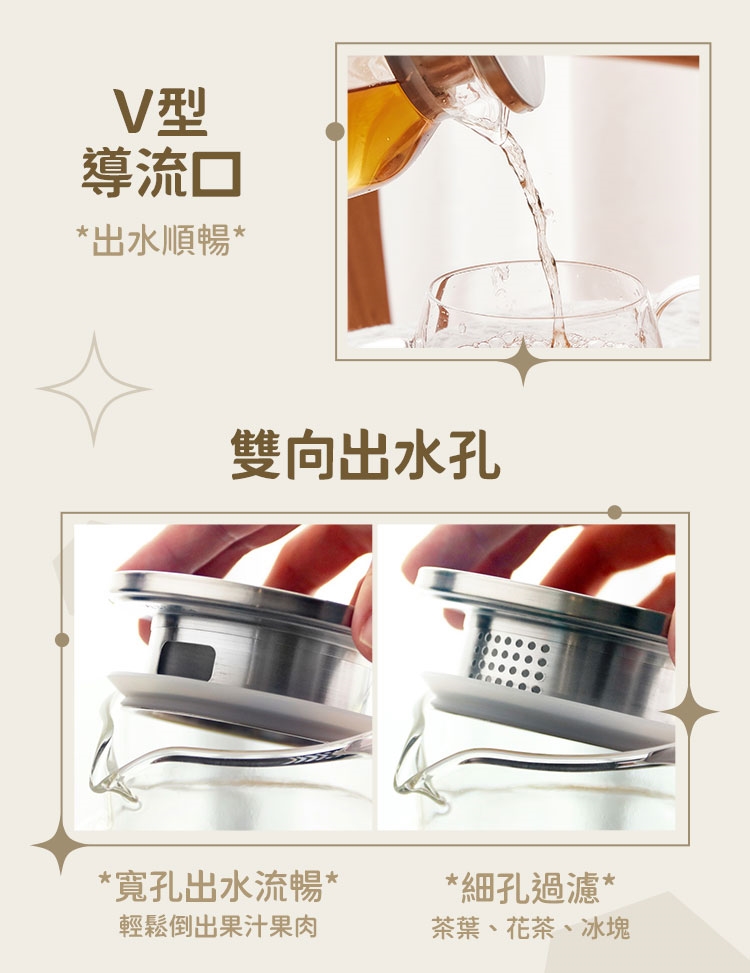 ◎玻璃使用後所殘留的茶垢或水垢,可將一至兩滴的醋滴入溫水稀釋後倒入瓶中,在開蓋的狀態下靜躅30分鐘後,用軟性海綿清洗。