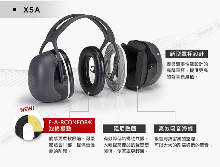 ◎專利高密度、低回彈性E-A-RCONFOR® 泡棉之襯墊,創造出高等級的舒適感及聲音衰減值