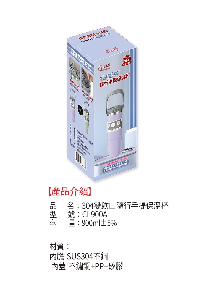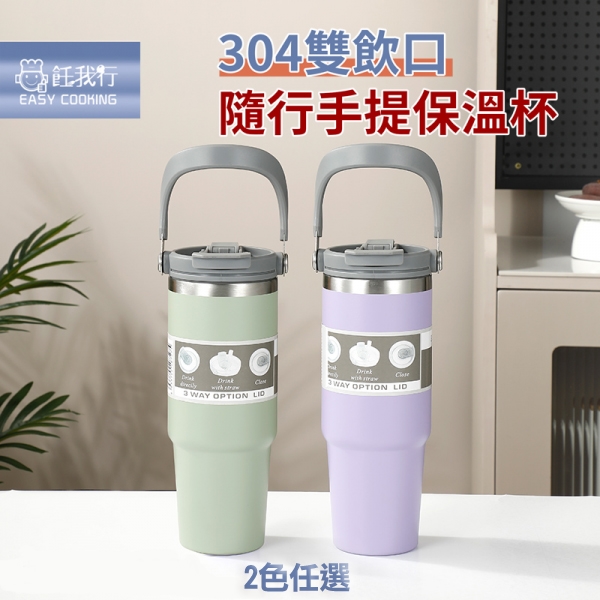 【飪我行】304雙飲口隨行手提保溫杯900ml (兩入組)