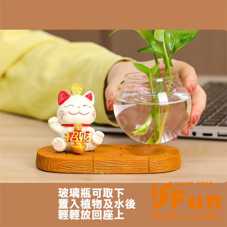 花瓶可種多種花藝,配上萌趣招財貓,為您帶來愉快心情,