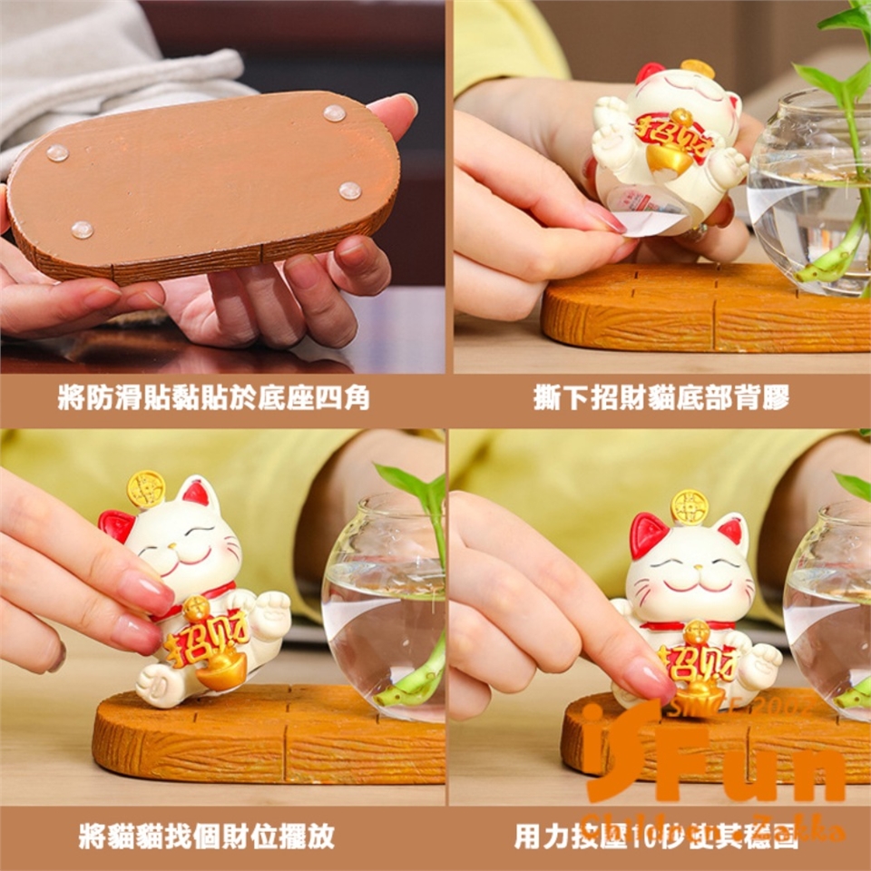 配件:招財貓公仔x1、陶瓷底座x1、玻璃瓶x1、雙面膠x1