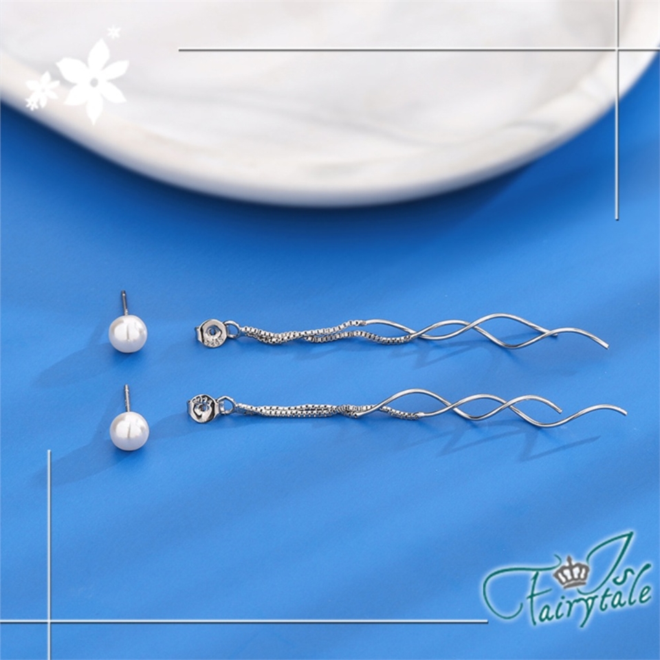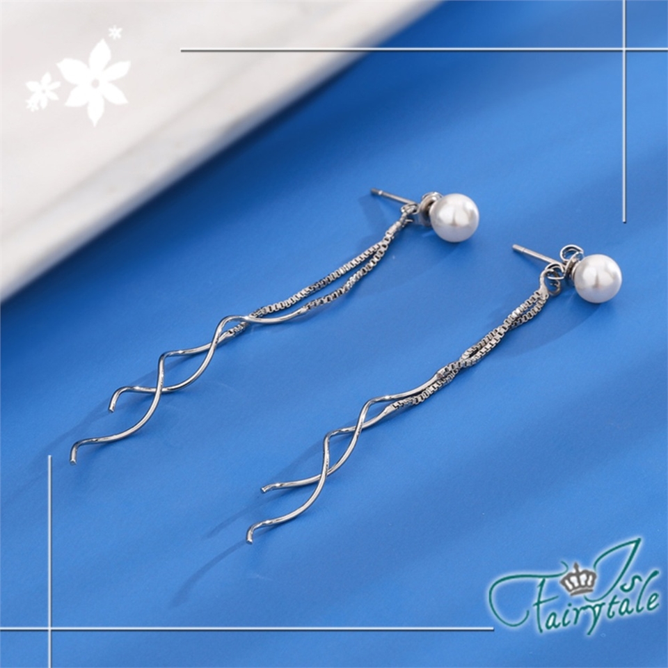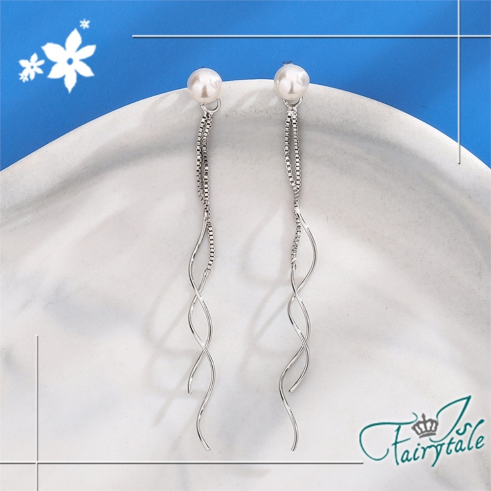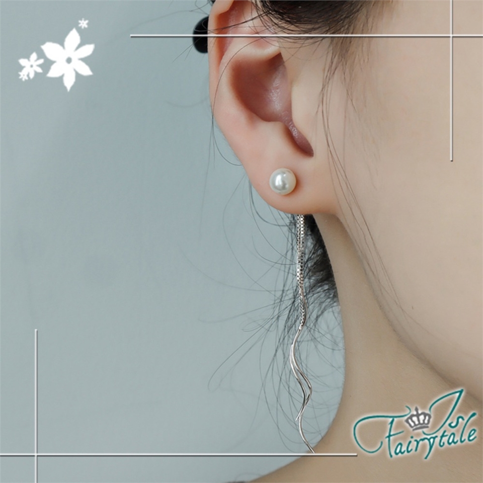 珍珠雙層波浪流蘇,時尚電鍍低過敏性耳針,