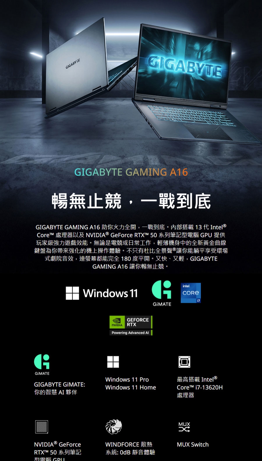 | 顯示器 | 16" 16:10 WUXGA (1920x1200) 165Hz IPS Display(Supports MUX Switch) |
