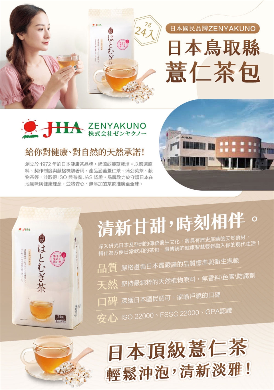 日本鳥取縣薏仁茶包以嚴選鳥取縣優質薏仁為原料,無添加、無咖啡因,