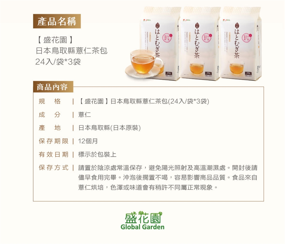 【盛花園】日本鳥取縣薏仁茶包(24入/袋,3袋/組)
