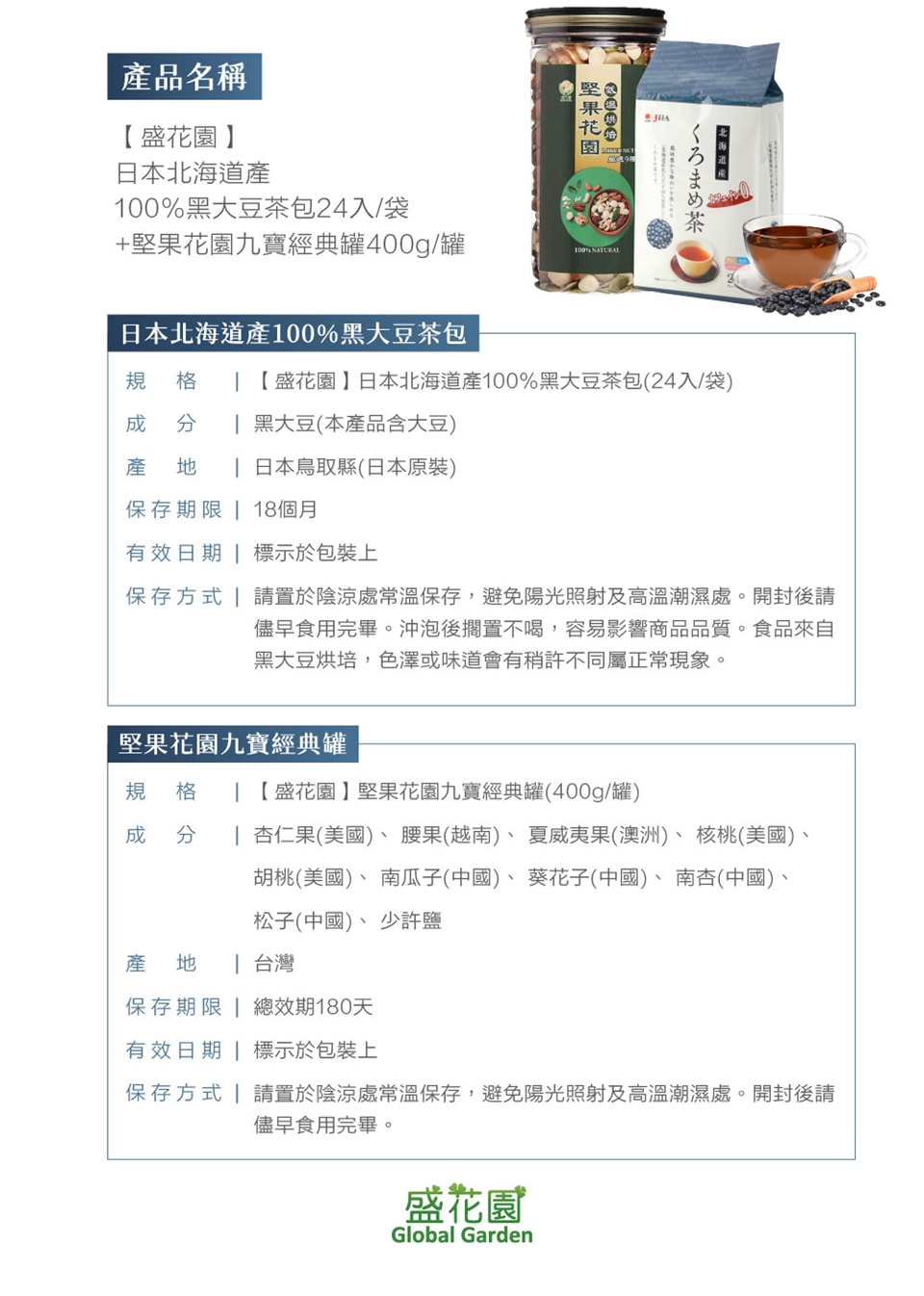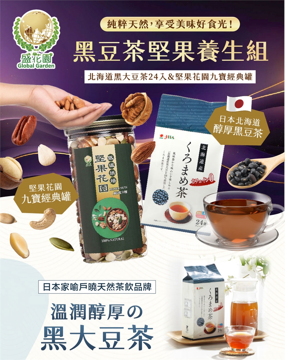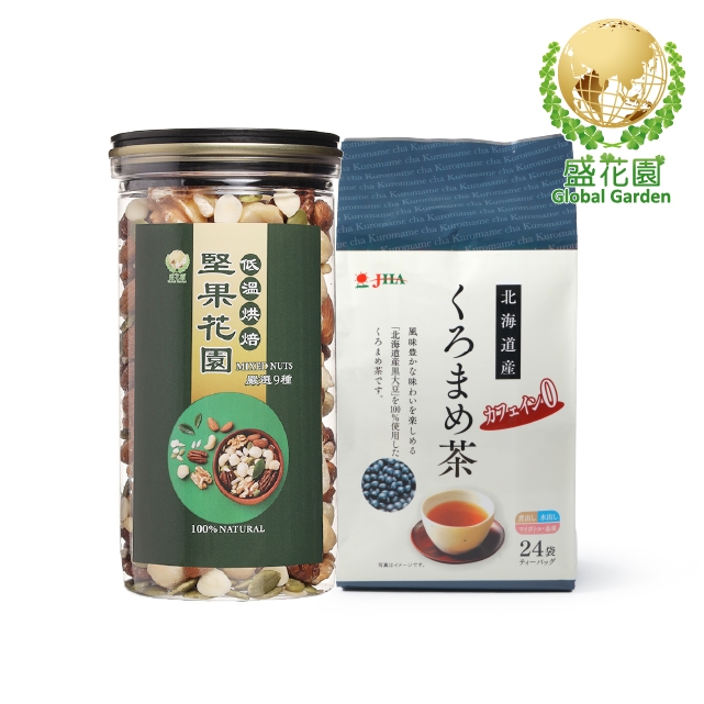 【盛花園】日本北海道產100%黑大豆茶包24入+堅果花園九寶經典罐1入雙享組