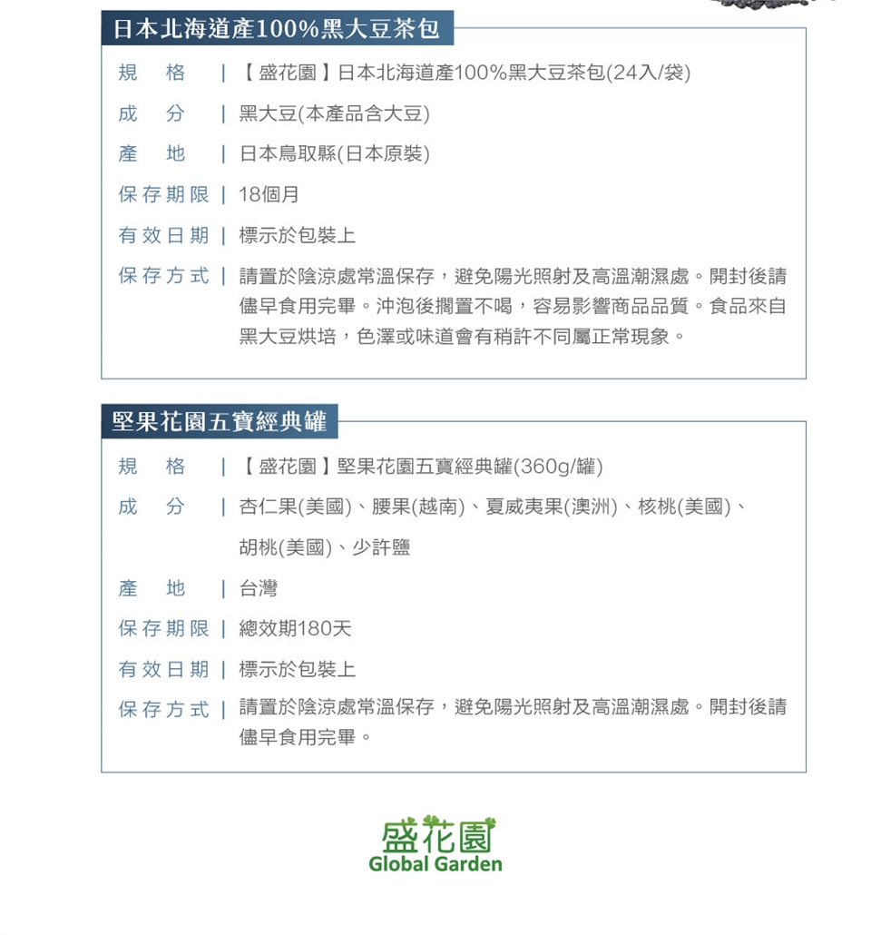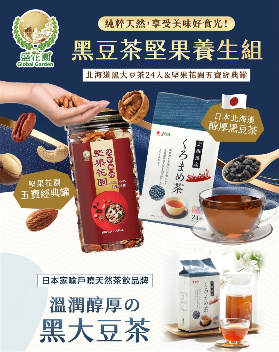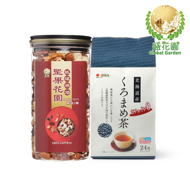 【盛花園】日本北海道產100%黑大豆茶包24入+堅果花園五寶經典罐1入雙享組