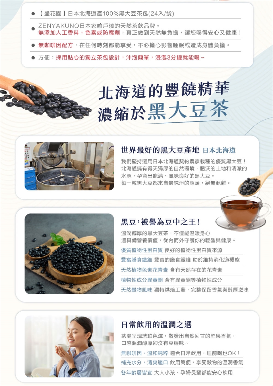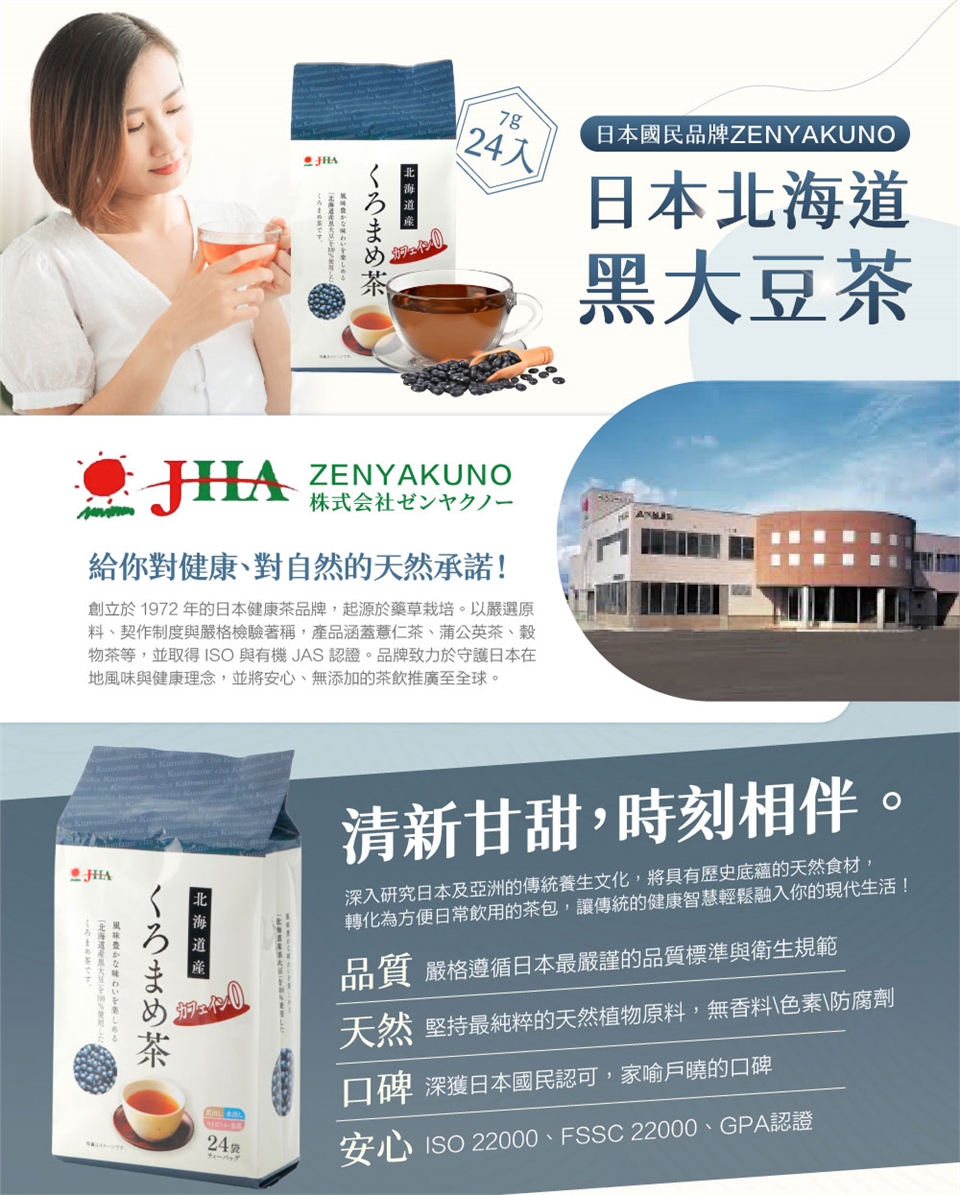 日本北海道產100%黑大豆茶包,以嚴選北海道黑大豆為原料,無添加、無咖啡因,