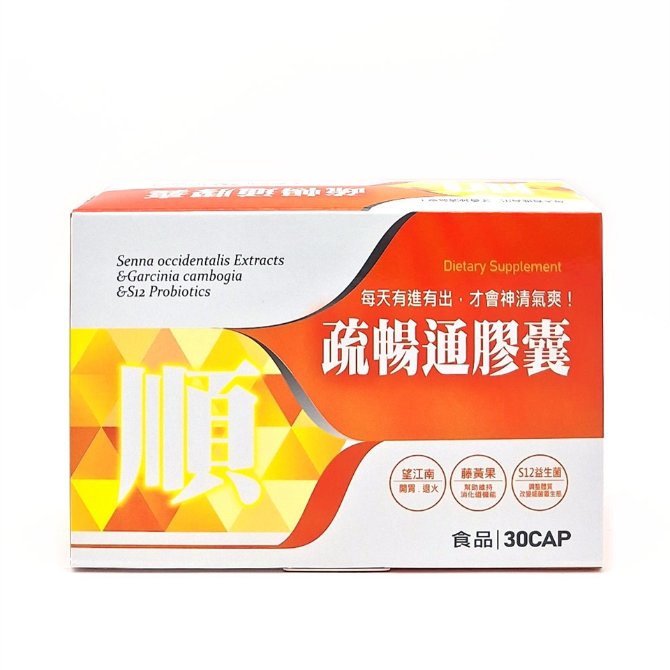 疏暢通採用望江南萃取物、微結晶狀α-纖維素、S12益生菌、藤黃果、荷葉萃取物及脂肪分解酵素,促進腸道蠕動,使糞便比較柔軟而易於排出。幫助維持消化道機能,改變細菌叢生態,是全家大小養生保健的好產品!