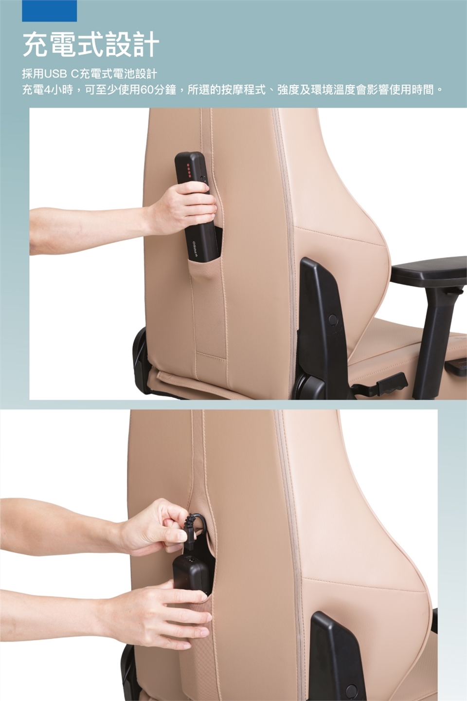 ✅ 唯一「無線按摩」工學椅 ——自由移動、不受插頭限制!