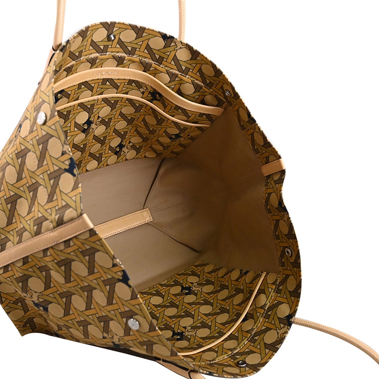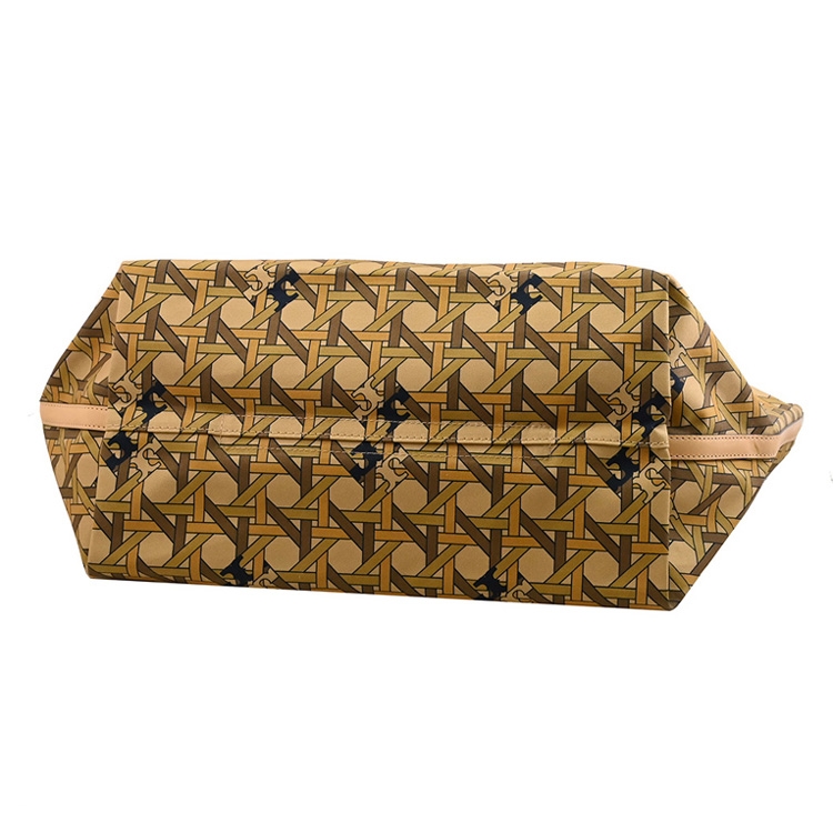 美國紐約時尚品牌 TORY BURCH(托里.伯奇) 來自於美國輕奢品牌,是近年來討論度極高的熱門精品品牌,鮮明大膽色彩表現,一眼看出這品牌LOGO設計;此款是專櫃新款托特包,採用經典花紋與帆布拼接皮革設計,三段壓扣設計,內有2大內袋+2口袋供收納,可裝A4文件、筆電或摺疊傘等隨身物品,都會簡約時尚的設計,無論上班或外出出遊逛街都合適,是輕便又實用的包款。