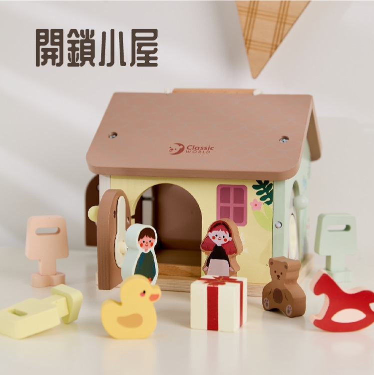 小屋設計有多個造型不同的門與專屬鑰匙,讓孩子在開關與配對中,培養耐心與專注力。