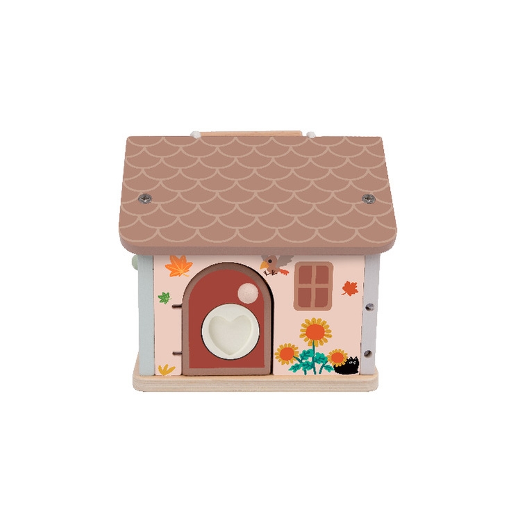 小屋外觀採用溫馨插畫風格,搭配便攜木質手把,方便收納與攜帶,無論在家中還是出遊都能隨時玩樂。
