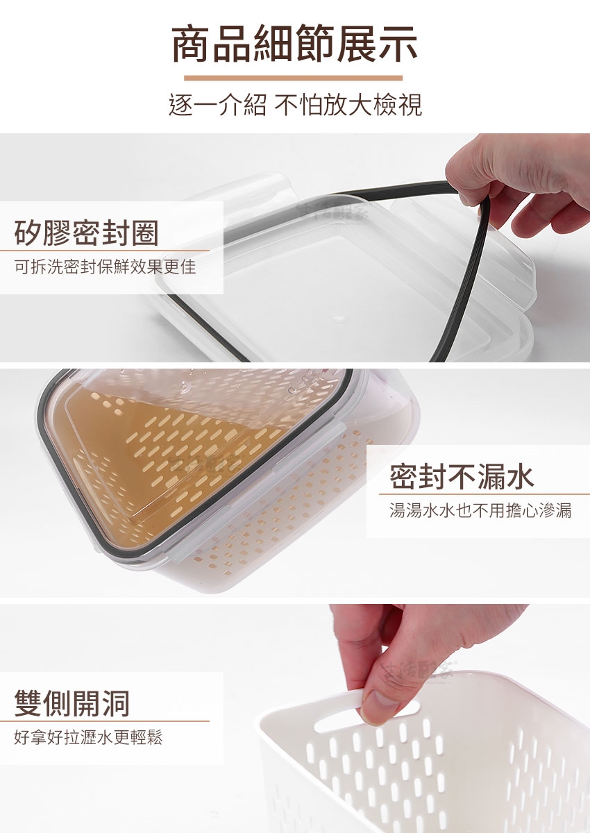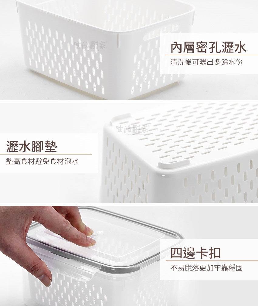 你需要【生活采家瀝水系列保鮮盒】,不僅是保鮮盒,還貼心的多加了瀝水功能,保存生鮮蔬果、海鮮肉品、零食等超級好用,保鮮盒可疊放不浪費空間;盒蓋內有密封膠條,湯湯水水不外漏,絶對是家用保鮮的最佳選擇!