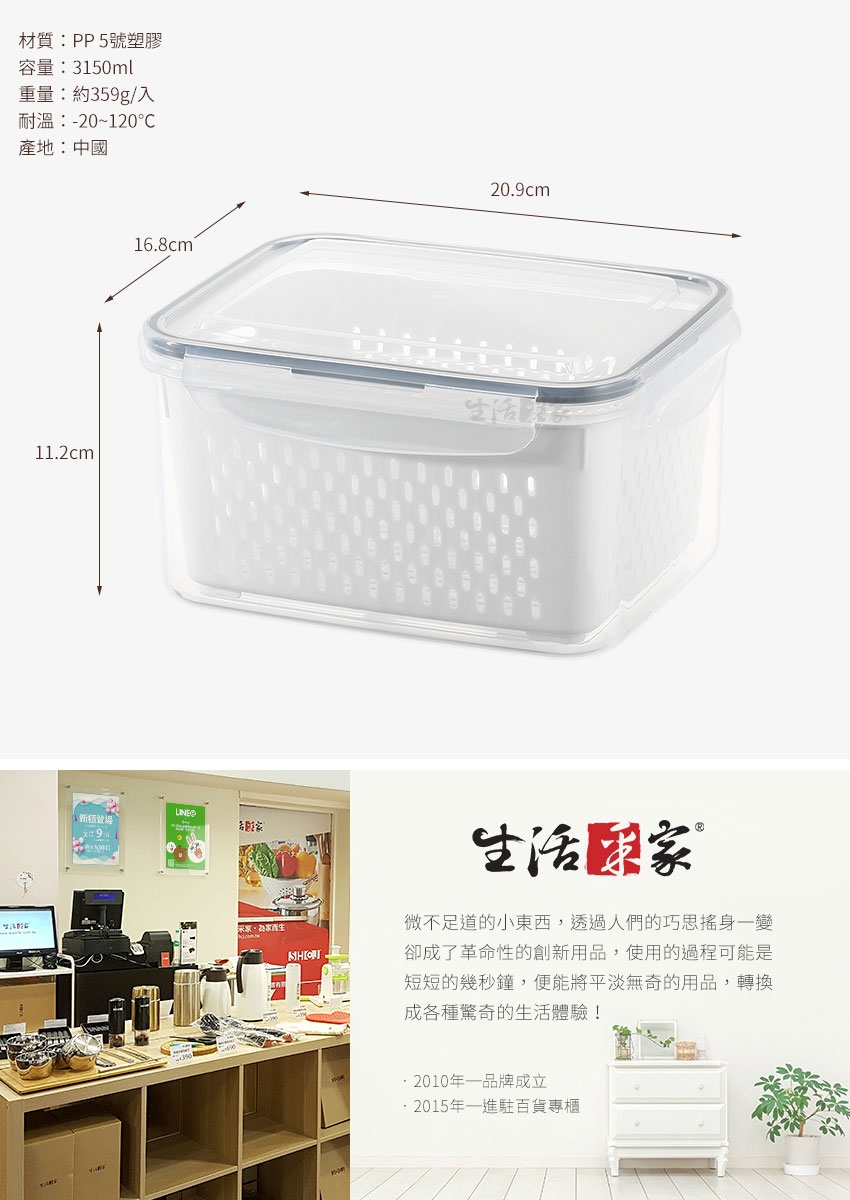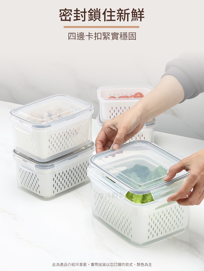 【生活采家】蔬果密封雙層瀝水保鮮盒_3150ml