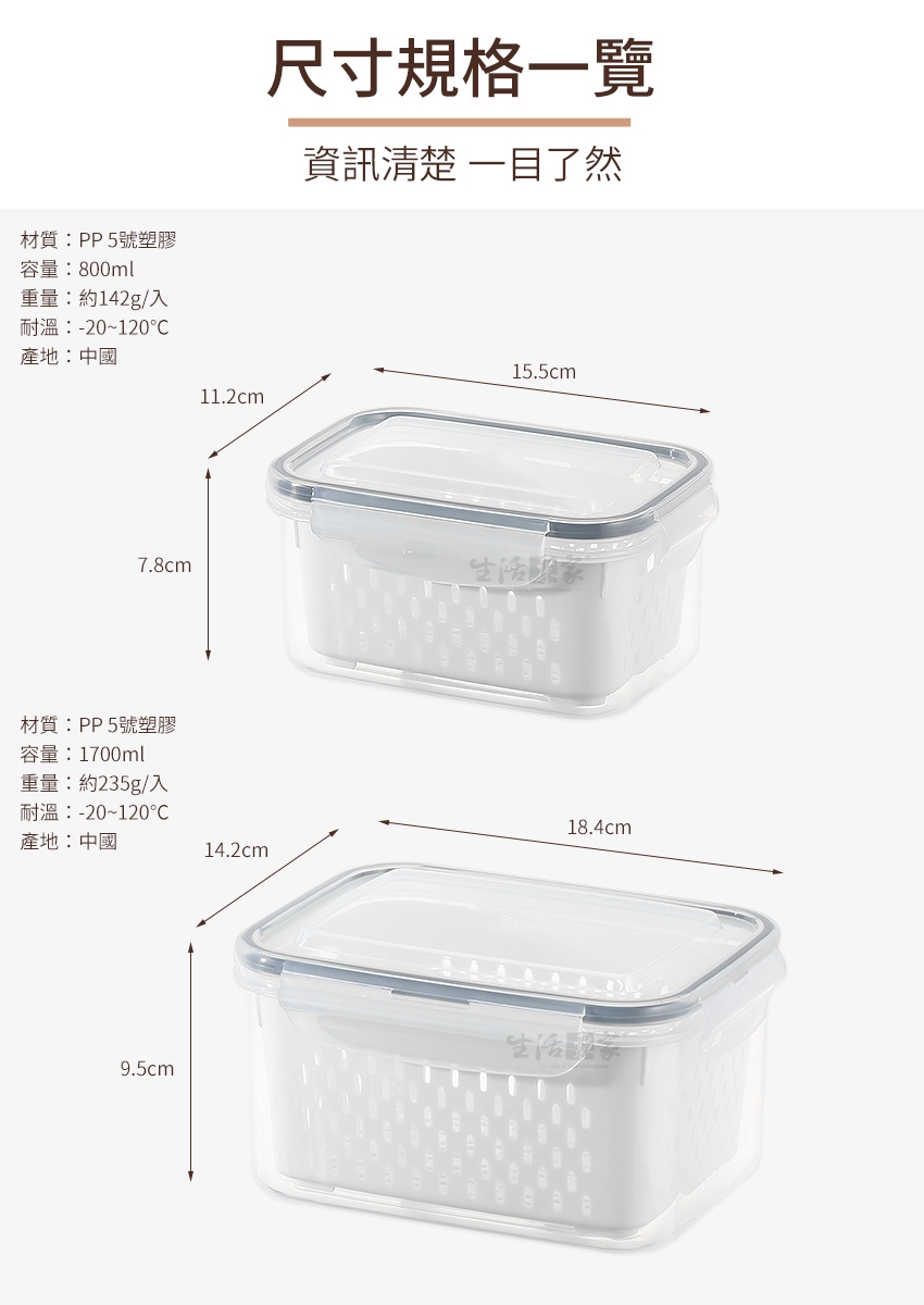◆雙層結構,可瀝水可保鮮,食材不泡水,保鮮更長久。