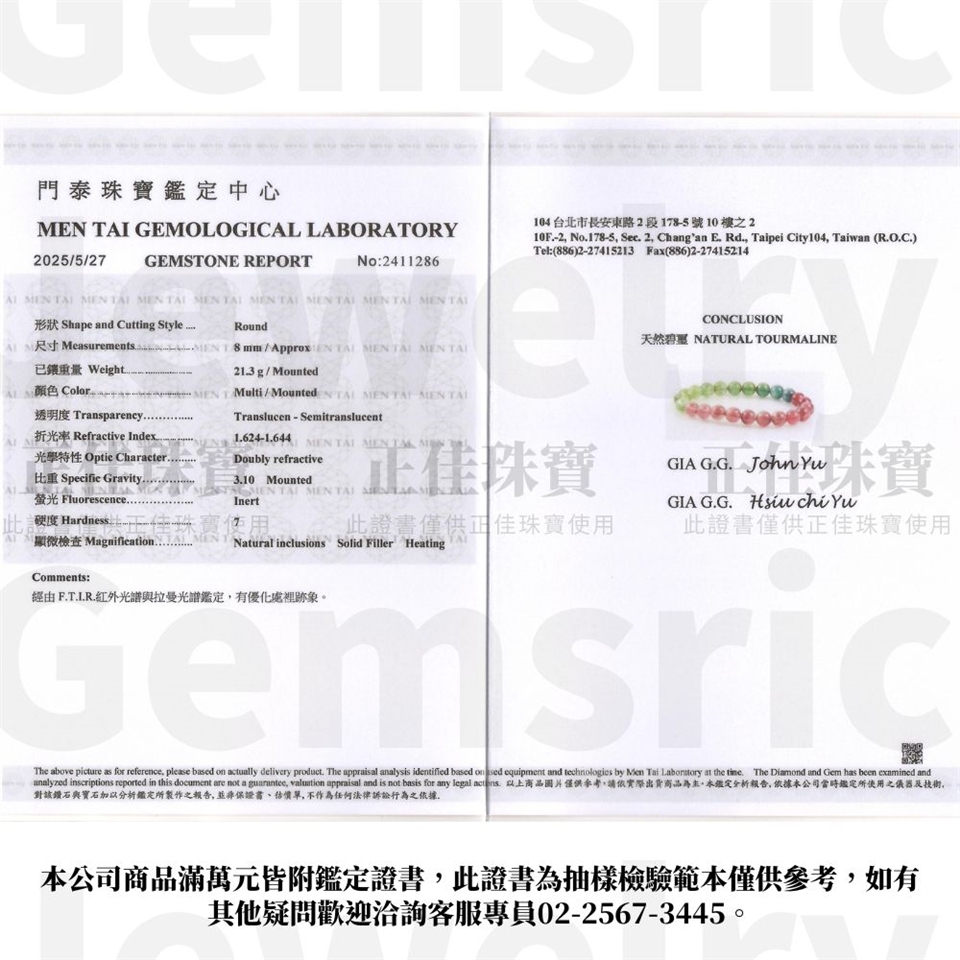 主角:彩碧璽 超頂級 漸變濃彩透體碧璽 8.1-8.5mm 彩碧璽手珠